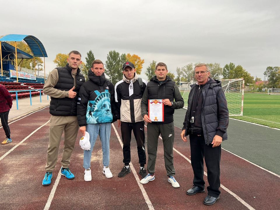 4 сентября на футбольном поле СК «Кристалл» проходили соревнования по футболу. Честь колледж отстаивали Кравченко Алексей Александрович, Панов Максим Олегович, Мажаров Иван Викторович, Возлев Алексей Александрович, Мороз Евгений Вадимович, Прокопенко Владимир Витальевич. Всего приняло участие 7 команд. Наши преподаватели успешно выступали от игры к игре, не пропустив ни одного мяча в своих воротах (вратарь Кравченко А.А.) Самой напряженной стала финальная игра так, как погодные условия оставляли желать лучшего, но для наших спортсменов это было не преградой. Итог – 1 место!