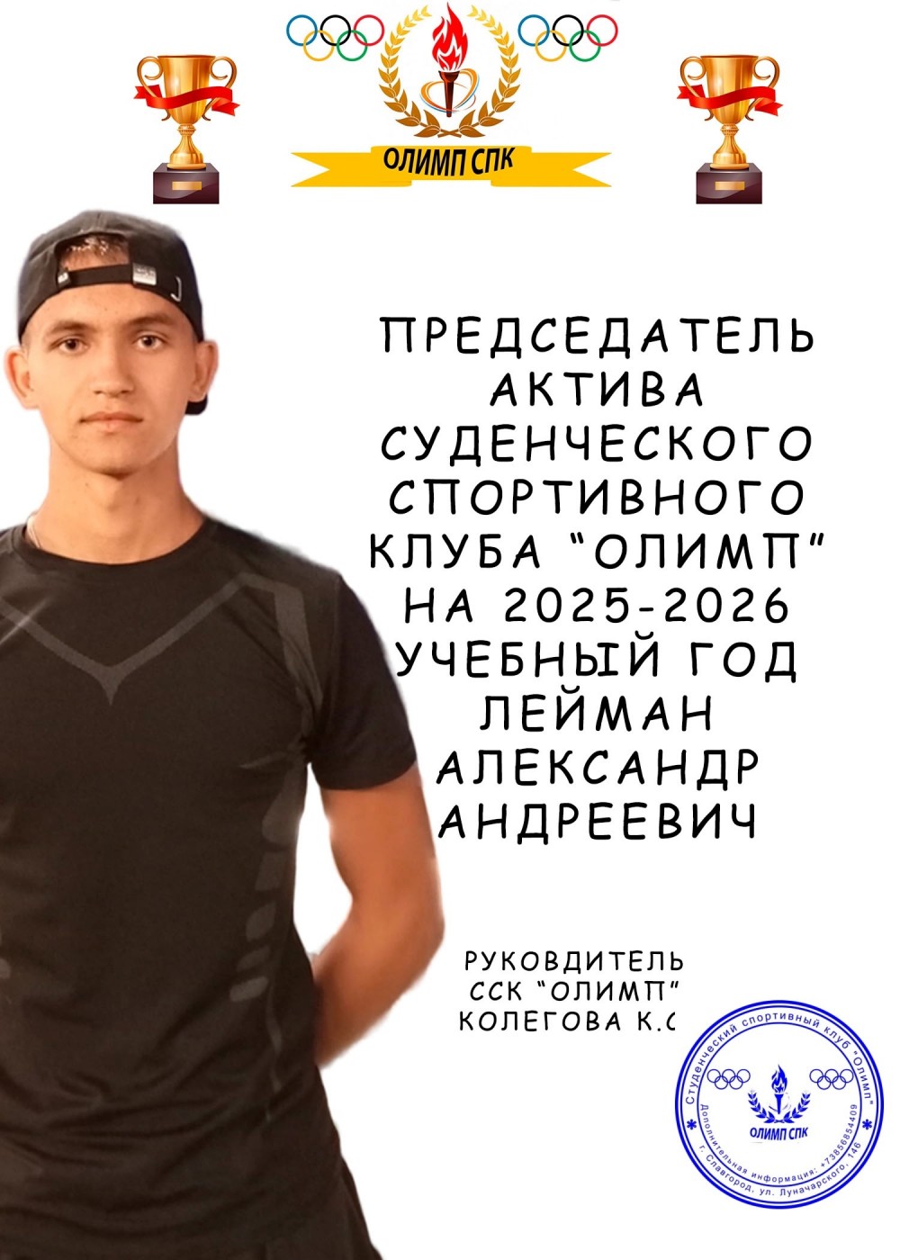 Руководство ССК «Олимп» выражает огромную благодарность Шредер Никите за активную помощь в реализации данного мероприятия.