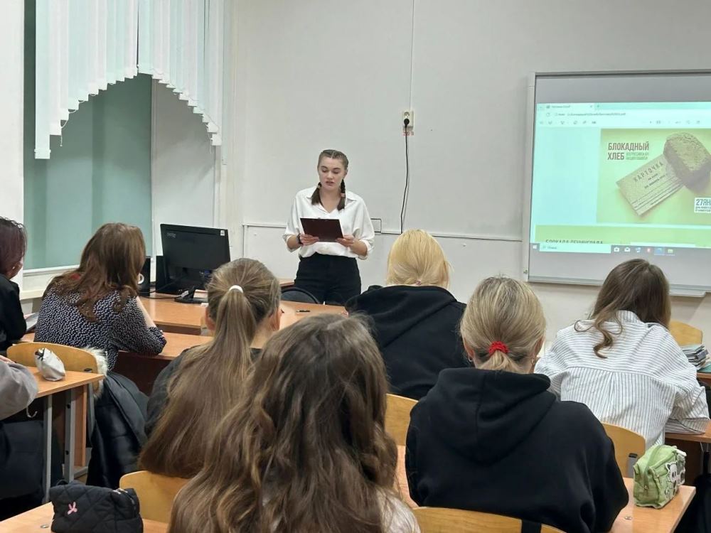 ![]() Российское общество «Знание»: «Непокоренный Ленинград» 27 января 2026 года, в день 82 – й годовщины полного освобождения Ленинграда от фашистской блокады, заместитель директора по воспитательной работе В.В. Агалакова, лектор Российского общества «Знание», провела для студентов 1 курса лекцию «Непокоренный Ленинград». Лекция была проведена совместно с депутатом Городской молодежной думы, студенткой 26 группы Сухарь Ксенией и была посвящена одной из самых трагических страниц в истории Второй мировой войны — блокаде Ленинграда. Она продлилась почти 900 дней и стала символом героизма и самоотверженности советского народа. В ходе выступления были освещены ключевые моменты трагической страницы истории Ленинграда: жизнь горожан в условиях жесточайшего голода и непрерывных бомбардировок, роль знаменитой Дороги жизни через Ладожское озеро, ставшей единственной связью с внешним миром, и невероятная стойкость и мужество ленинградцев, благодаря которым город смог выдержать осаду и одержать победу. Особенное внимание было уделено героизму жителей Ленинграда, их несгибаемому духу и готовности бороться до конца, несмотря на все трудности. Студенты смогли почувствовать всю тяжесть пережитого городом и оценить величие подвига его защитников. Героизм ленинградцев стал маяком надежды в самые мрачные дни войны и до сих пор остаётся для всего мира нравственным ориентиром.
