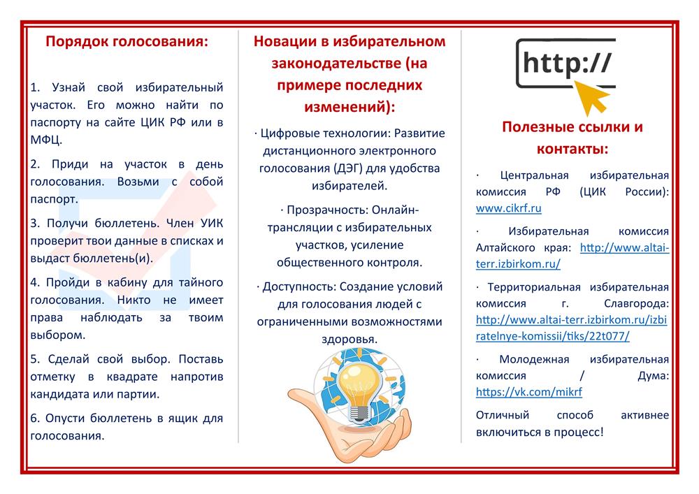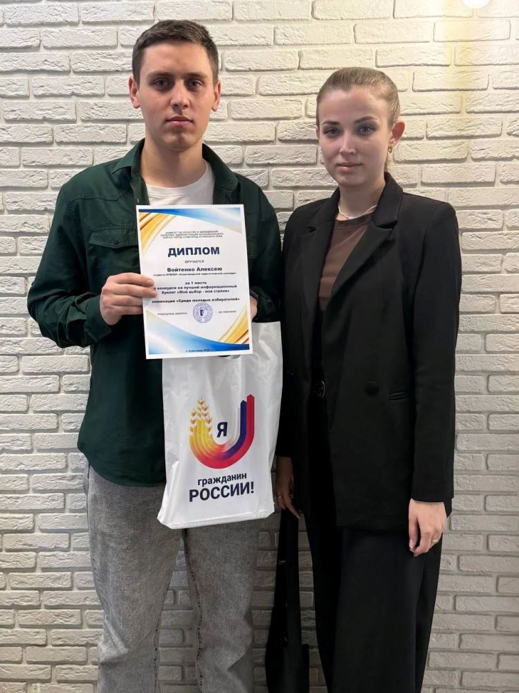 ![]() Победа в городском конкурсе «Мой выбор – моя страна» В феврале 2026 года в Славгородском педагогическом колледже проходит месячник молодого избирателя, главная цель которого - повышение правовой культуры молодежи, уровня информированности молодых избирателей о выборах, создание условий для осознанного участия в голосовании, формирование у студентов колледжа гражданской ответственности, развитие интереса молодых и будущих избирателей к вопросам управления государственными делами посредством выборов. В рамках месячника 6 студентов Славгородского педагогического колледжа приняли участие в городском конкурсе на лучший информационный буклет «Мой выбор – моя страна» среди молодых и будущих избирателей. Конкурсные работы должны были содержать основные понятия о выборах, порядок голосования, разъяснения и новации избирательного процесса, а главное – отражать значимость участия молодежи в избирательном процессе. По результатам конкурса в номинации «Молодые избиратели – студенты профессиональных образовательных организаций» 1 место занял студент 13 группы Славгородского педагогического колледжа Алексей Войтенко (руководитель С.И.Духанина). Алексей представил на суд жюри буклет «Твой голос важен для будущего!», который содержит не только понятия о выборах и порядок голосования, но и полезные ссылки и контакты для молодых избирателей. Автор: В.В. Агалакова, заместитель директора колледжа Фото предоставлены автором