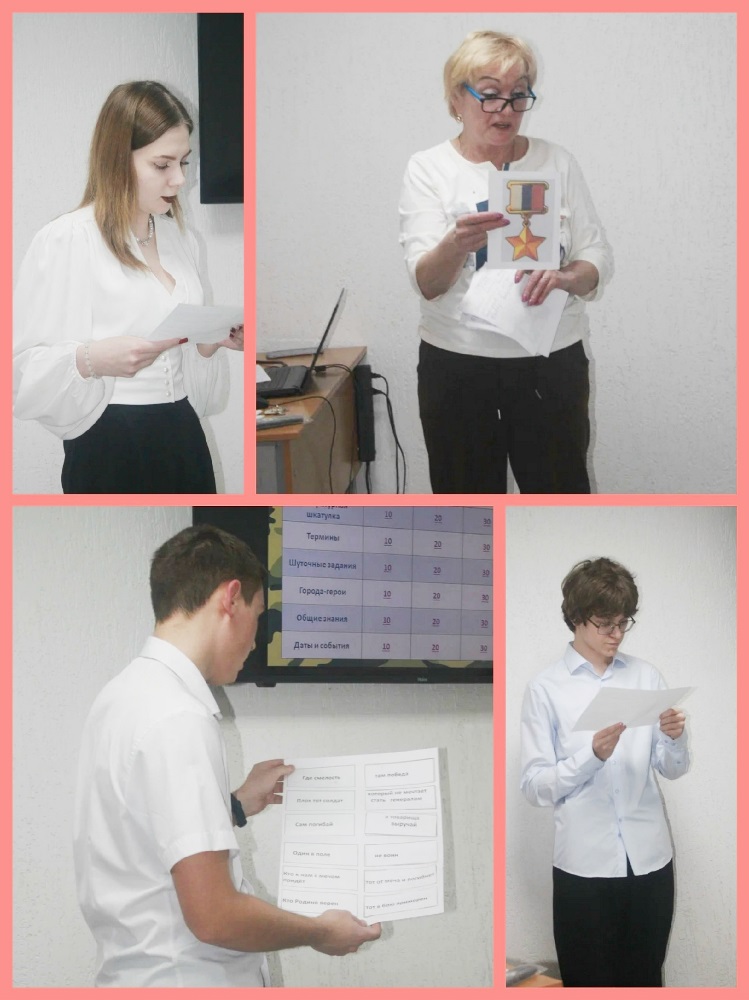 ![]() Студенты колледжа проверили свои знания в викторине В феврале отмечается праздник «День защитника Отечества». Этот праздник – знак особой признательности воинам всех поколений за мужество и героизм, благодарность тем, кто защищает нашу Родину, живёт и трудится ради её процветания. Во все времена вооруженные силы государства являются гарантом его национальной безопасности и мира. Его празднование символизирует связь всех поколений русского воинства, память о подвигах, совершенных во славу мира на земле, о битвах и героях, оставивших свой светлый след в истории. В преддверии этого праздника и согласно плану КВД в общежитии прошла викторина «Защитники Отечества». В начале мероприятия дети ознакомились с экспозицией «Герои Отечества», рассказали о великих военачальниках всех времен, начиная с древней Руси, таких, как Александр Невский, Дмитрий Донской, Александр Суворов, узнали о героических подвигах М.И. Кутузова, К.К. Рокоссовского, Г.К. Жукова и других великих полководцев. Затем студенты приняли участие в интерактивной викторине «Защитники Отечества». Она состояла из восьми категорий вопросов: армейские термины, города-герои, даты и события и др. Каждая категория содержала четыре вопроса, что позволяла участникам выбирать наиболее интересные для них темы и проверять свои знания по военной истории России, современной армии, воинским званиям и технике. Вопросы охватывали темы от древнерусских воинов до ключевых сражений Великой Отечественной войны. Игра была захватывающей и динамичной, вовлекала участников в активное взаимодействие. В ходе мероприятия студенты познакомились с боевыми наградами Российской Федерации, которыми награждают военнослужащим за проявленный героизм, мужество и профессионализм при защите Отечества, такими как «Золотая Звезда», «Орден Мужества», медалями «За отвагу» и «За храбрость». В заключение мероприятия студенты вспомнили пословицы и поговорки на армейскую тему. Данная викторина побуждает студентов проявлять любовь к родному Отечеству, гордиться историей нашей Родины. Автор: Т.Б. Алексеева, воспитатель общежития Фото предоставлены автором