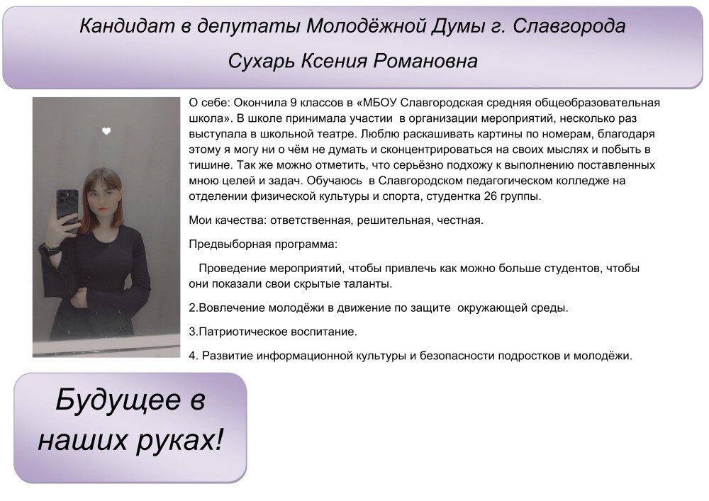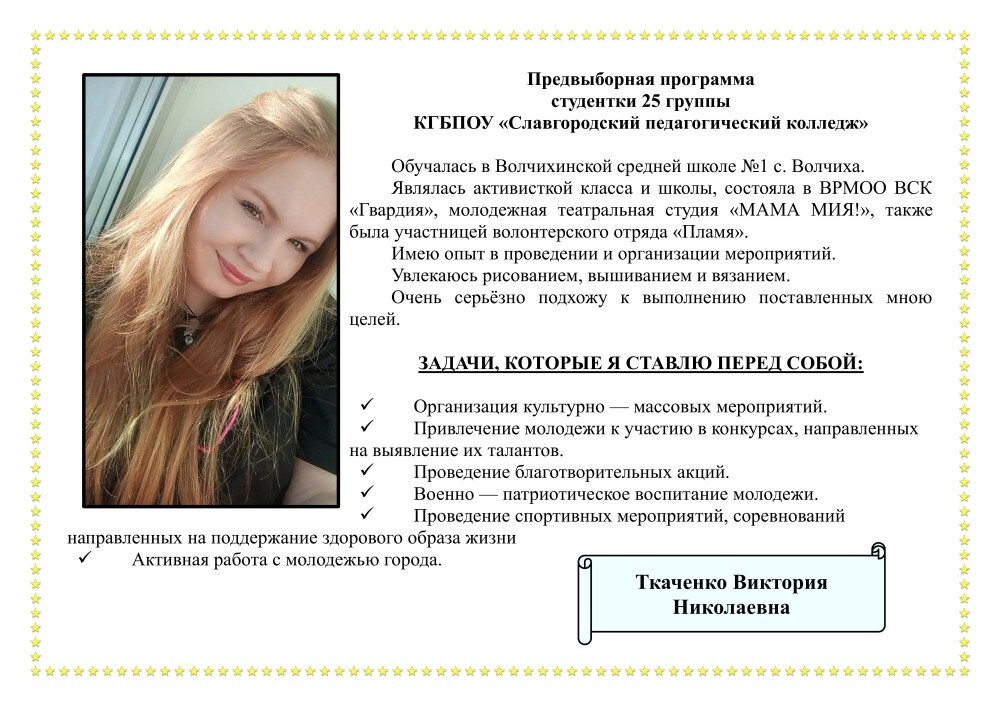 ![]() Сделайте свой выбор! 17 октября 2025 года с 8.00 до 16.00 в Славгородском педагогическом колледже будут организованы выборы в Городскую молодежную думу 14 созыва, в которых примут участие все обучающиеся нашего учебного заведения. Студентам 1 - 4 курсов необходимо будет выбрать 2 ребят, которые будут представлять наш колледж в ГМД. На 2 места депутатов претендуют 3 студентки: Суворова Алиса (11 группа), Ткаченко Виктория (25 группа) и Сухарь Ксения (26 группа). Процесс голосования и подсчет голосов будет осуществлять участковая избирательная комиссия, состоящая из студенток 31 группы: Дреер Дианы, Витт Виктории, Миллер Виктории, Дюжий Софьи и Лорай Кристины. Предвыборные программы наших кандидатов размещены в 1 и 3 корпусах, а также в социальных сетях нашего колледжа. Автор: В.В. Агалакова, заместитель директора колледжа Логотип из открытых источников
