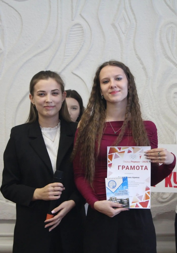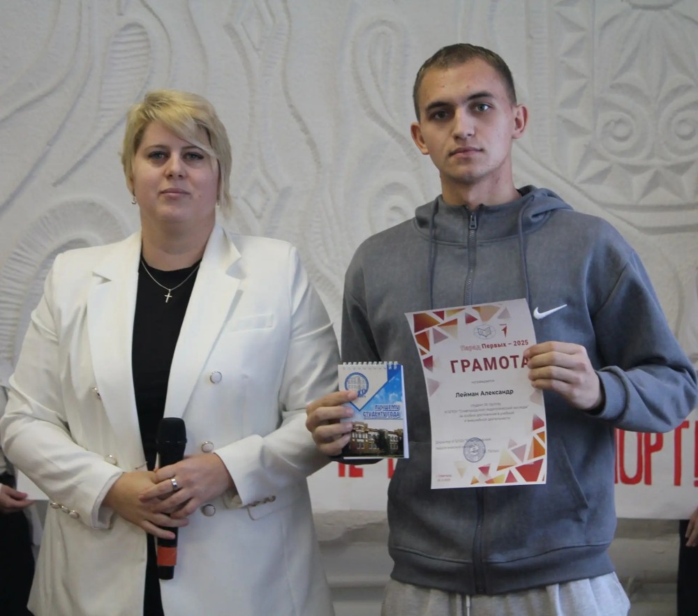 ![]() «Парад Первых – 2025» Именно под таким названием 18 декабря 2025 года прошел в столовой Славгородского педагогического колледжа торжественный прием у директора. Ровно 10 лет назад в этом зале впервые собрались на «Параде звезд» 43 лучших студента Славгородского педагогического колледжа - и с тех пор такие предновогодние встречи стали доброй традицией нашего учебного заведения. В этом году мероприятие прошло в стиле настоящего советского парада – зал был украшен лозунгами, из динамиков звучала бодрая торжественная музыка, а участники приветствовали друг друга и выступающих яркими флажками и шариками. Участниками «Парада звезд» в 2025 году стали 53 студента, которые достигли особых успехов в учебной и внеучебной деятельности. Они получают повышенную стипендию, участвуют и побеждают в профессиональных, творческих конкурсах, проектах, предметных олимпиадах на колледжном, региональном, всероссийском и международном уровнях, одерживают спортивные победы, играют в театре, танцуют, рисуют и поют. В этот день для них звучали слова благодарности и поздравления от директора Г.И.Петерс и его заместителей по учебной и научно-методической работе Сулимовой Е.А. и Дроздовой С.А., советника директора по воспитанию и взаимодействию с детскими общественными объединениями Духаниной С.И., а также от руководителя студенческого спортивного клуба «Олимп» Колеговой К.С. Атмосферу праздника создали ведущие торжественного мероприятия, вокалисты и танцоры колледжа, а также пришедший поздравить всех присутствующих с приближающимся Новым годом Дед Мороз. Особое ощущение торжества создавало и осознание того, что уже через год, 1 декабря 2026 года, Славгородскому педагогическому колледжу исполнится 100 лет - именно поэтому на мероприятии прозвучало много праздничных слов о предстоящем юбилее нашего общего дома. После официальной части «звездочки» колледжа получили возможность пообщаться за сладким столом и поучаствовать в праздничной фотосессии. Автор: В.В. Агалакова, заместитель директора колледжа Фото предоставлены автором