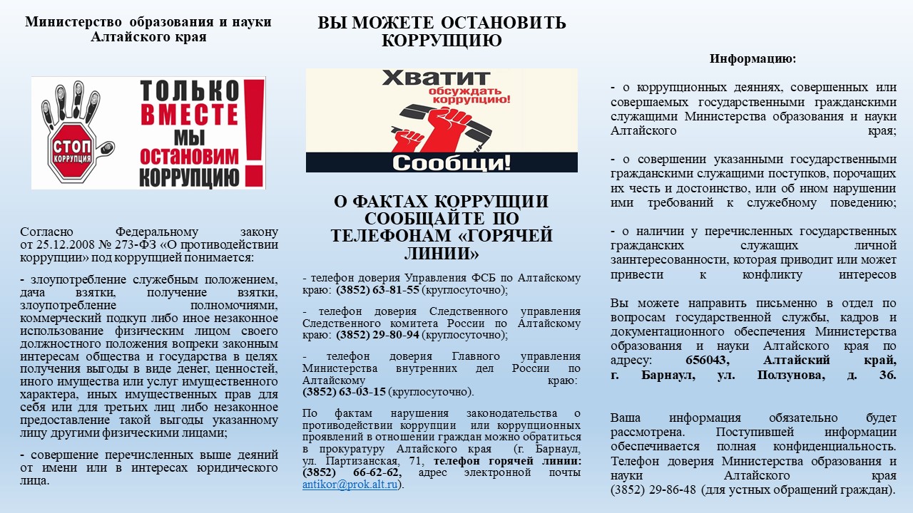 Информация по противодействию коррупции, рекомендованная Прокуратурой Алтайского края