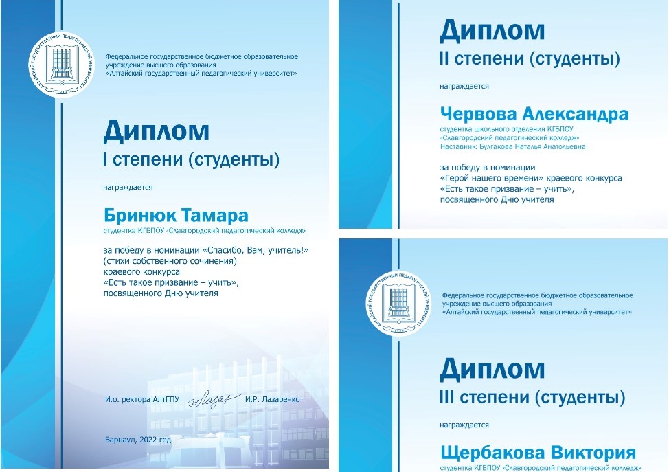 Преподаватель Славгородского педагогического колледжа получила награду на торжественной церемонии в Правительстве Алтайского края