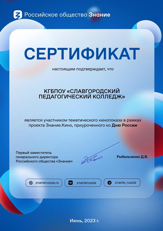Славгородский педагогический колледж – региональная площадка Российского общества «Знание»