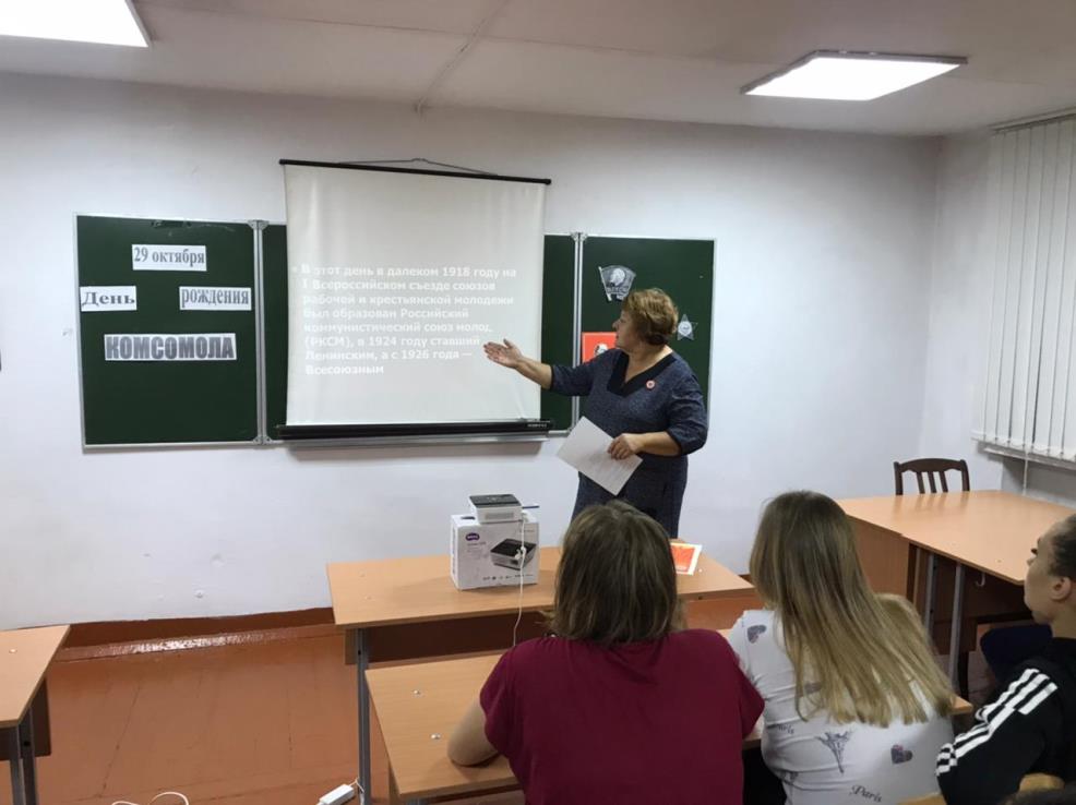 ![]() День рождения комсомола В России ежегодно 29 октября отмечается День рождения комсомола. Комсомол уже не имеет свой прежний смысл, связанный с идеологией. Но старшее поколение вспоминает это движение молодых с ностальгией. 29 октября 1918 года на первом Всероссийском съезде союзов рабочей и крестьянской молодежи было принято решении о создании РКСМ (Российского коммунистического союза молодежи). Позже эту организацию дважды переименовывали: Таким образом, получился ВЛКСМ – Всесоюзный Ленинский коммунистический союз молодежи. В 1922 году – под руководством комсомола была создана Всесоюзная пионерская организация имени В.И.Ленина. В рамках клуба выходного дня в общежитии прошло мероприятие «Экскурсия в историю. К 105 – летию со дня создания ВЛКСМ». Воспитатель Алифанова Антонина Петровна показала студентам общежития презентацию, посвященную истории образования Комсомола. Рассказала кто такие герои комсомольцы: Любовь Шевцова, Олег Кошевой, Зоя Космодемьянская, Александр Матросов, Лиза Чайка…. Познакомила с сюжетом книги Молодая гвардия и фильмов Неуловимые мстители, Корона российской империи. Поделилась своими воспоминаниями, когда она была комсомолкой в школьные и студенческие годы. Показала свои Почетные грамоты, которыми была награждена комсомольской организацией СХТ. Комсомольцы всегда были первыми, и в Гражданскую войну, и в Великую Отечественную войну, героически трудились в послевоенные годы, в числе передовиков поднимали целину, строители БАМ, Магнитку, Турксиб, электростанции в Сибири. В конце мероприятия студенты прослушали несколько песен, посвященных теме комсомола, задавали вопросы воспитателю по данной теме. Автор: А.П. Алифанова, Фото предоставлены автором