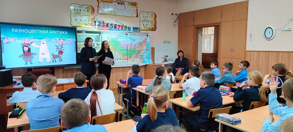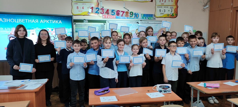 ![]() Всероссийский урок «Арктика» Всероссийский урок «Арктика» проводится ФГБОУ ДО «Федеральный центр дополнительного образования и организации отдыха и оздоровления детей» совместно с культурно-просветительным проектом «Дети Арктики». Цель урока - расширить представление обучающихся об Арктике, показать уникальность этого региона. 17 ноября 2023 года студенты первого курса Славгородского педагогического колледжа Варвара Прокудина и Мила Мегедь (в рамках работы над практико-ориентированным проектом) провели Всероссийский урок в 4 «Б» классе МБОУ «СОШ №15» г. Славгород, Алтайский край. Булгакова Наталья Анатольевна, преподаватель географии, оказала помощь в проведении этого урока. В начале урока ребята посмотрели интересную презентацию «Разноцветная Арктика», совершили виртуальную экскурсию в этот удивительный регион нашей страны, посмотрев мультфильм «Дети Арктики». Так же ребята попробовали себя в роли знатоков Арктики, участвуя в интерактивной игре-викторине. Что называют Арктикой? Чем бывает вызвано полярное сияние? Какого цвета бывает полярное сияние? Где в Арктике можно найти единорога? Сколько коренных народов проживает в российской Арктике? На эти и многие другие вопросы смогли дать ответы участники этого урока. В конце урока ребятам был предложен раздаточный материал с выполнением заданий по раскрашиванию. Они раскрасили полярное сияние, растения и животных Арктики, народный костюм жителей Арктики. Изобразительная деятельность подарила ребятам радость познания творчества. Этап рефлексии является обязательным этапом урока. Рефлексия помогает ученикам сформулировать результаты деятельности, определить цели дальнейшей работы. В конце урока все ребята получили сертификаты участников Всероссийского урока «Арктика». Урок прошел интересно и познавательно, оставил массу положительных эмоций у всех участников. Прокудина Варвара: «Я очень рада, что стала участником Всероссийского урока «Арктика». Урок помог погрузиться в фантастическую атмосферу этого уникального региона, расширил знания в области географии. Такие уроки остаются в памяти школьников надолго, так как не только открывают новые горизонты знаний, но и взращивают искреннее чувство гордости за природные и культурные богатства нашей страны.