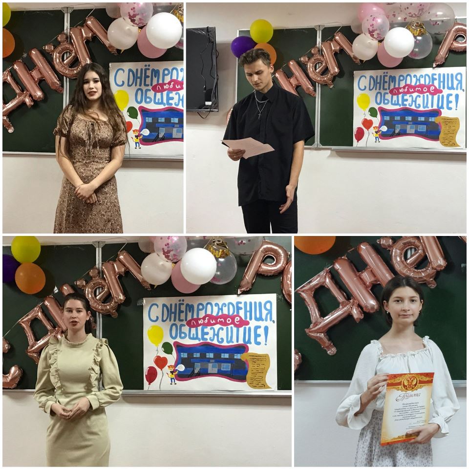 ![]() С Днём рождения, общежитие! В этом году нашему общежитию исполнилось 57 лет. Студенческий совет общежития и воспитатель Стрельникова О.А. организовали и провели праздничный марафон для студентов-жителей общежития. Студенты могли поучаствовать в различных мероприятиях. Интеллектуальный квиз объединил жильцов общежития - они отвечали на вопросы о колледже, строительстве общежития, жизни студентов, их увлечениях. Проходили вечера настольных игр, конкурс на лучший плакат, посвящённый Дню рождения общежития, оформлено празднично фойе. Студенты прослушали нормативно-правовую лекцию, где им пришлось вспомнить главные документы, регламентирующие жизнь в общежитии, открыта Доска почёта «Наши активисты». Вечер – поздравление поддержал студентов, которые живут в общежитии, помог раскрыть их творческий потенциал и дал возможность показать атмосферу жизни в общежитии. О.А.Стрельникова рассказала историю строительства нашего общежития, и в каких условиях жили студенты, когда училище было открыто. На вечере звучали стихи о профессии учителя. «О Родине» прочла Полина Реймер, стихотворение собственного сочинения прочла Эвелина Фёдорова. В исполнении Валерия Воронина прозвучала миниатюра «День рождения в общежитии», вызвавшая неподдельный интерес и смех студентов, потому что многие узнали в ней себя! Прозвучали песни в исполнении Виктории Руденко, Даниила Ефименко, Анастасии Никитиной, Ольги Чумаковой, Кирилла Изотова, Валерия Воронина, Надежды Косторевой. Первое место в конкурсе плакатов заняла Анна Щитова (12 гр). С интересом ребята рассматривали стенд «Наши активисты», который был создан практически активистами 4 этажа. Анна Григорьева организовала фотосессию студентов, староста Диана Киселёва распечатала фотографии, зам. старосты Анастасия Мешалкина и председатель ССО Анастасия Горкун помогали в оформлении. На стенде размещены фотографии студентов, которые активно участвуют в жизни общежития – участвуют в различных мероприятиях, оказывают помощь и студентам, и воспитателям в организации жизни студентов общежития. Также на вечере девушки – активисты 3 и 4 этажа поздравили студентов с праздником и пожелали нашему общежитию процветания, новых побед, достойных студентов – жильцов, которые гордо будут представлять наше общежитие. Завершился вечер праздничной дискотекой. Вот так ярко мы встретили День рождения общежития. Мы желаем студентам уюта, успехов в учёбе, дружбы и хороших друзей! Автор: О.А. Стрельникова, воспитатель общежития Фото предоставлены автором