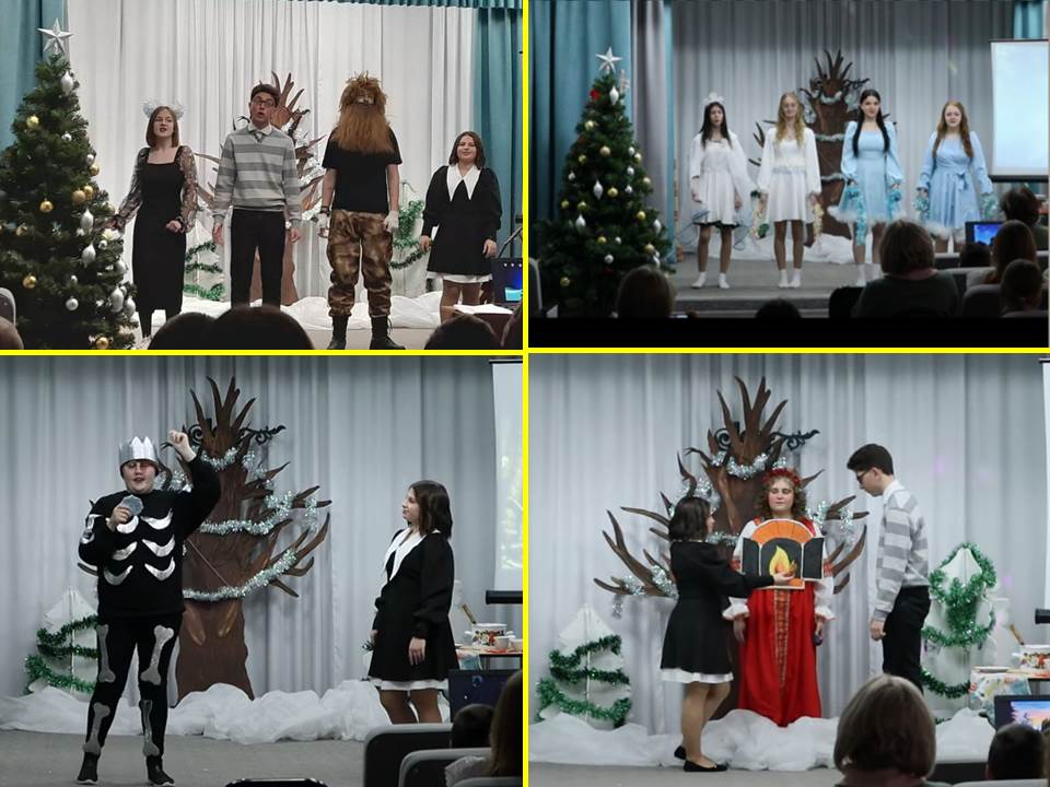 ![]() Новогодние приключения Маши и Вити Новый год - это сказочный праздник, любимый праздник всех детей. Его долго ждут, веря в сказку и чудо. В преддверии Нового года методисты КГБПОУ «Славгородский педагогический колледж» Батлук О.А., Околович Л.А., Олешко Т.С. и студенты 32 группы в рамках производственной практики по профессиональному модулю «Организация досуговых мероприятий» подготовили и провели театрализованное представление «Новогодние приключения Маши и Вити», на которое были приглашены учащиеся образовательных учреждений города Славгорода. Целью театрализации было создание сказочной атмосферы новогоднего праздника и положительных эмоций для детей. Студентам же предстояло закрепить ряд профессиональных компетенций через подготовку и проведение праздника как формы массовых досуговых мероприятий. В ходе подготовки к мероприятию отрабатывали навык разучивания танцев и песен, а также работали над выразительностью сценической речи, мимики и пантомимы. С самого начала представления сказочные герои Баба Яга (Буркова Валерия) и Кощей (Рябчун Дарья) увлекли детей в волшебный мир сказки. Дети смогли окунуться в праздничную атмосферу приключений, вместе с главными героями в исполнении студентов Бережной Виктории и Заковряшина Романа, помогли Яблоньке (Маликова Татьяна) и Печке (Афанасьева Диана), выручили Лесовичка (Прохоров Дмитрий). Дружба, хитрость и сноровка помогли Вите и Маше разгадать козни бабы Яги, перехитрить дикого Кота (Глейзер Анна), напугать Лешего (Шефер Алексей) и освободить Снегурочку (Половинко Диана) из царства Кощея. Чтобы зрители не оставались пассивными наблюдателями, сказочные персонажи вовлекали их в разнообразную деятельность: дети отгадывали загадки Кощея, учили бабу Ягу танцевать, исполняли песни с Лесовичком. Новый год – время исполнения заветных желаний, а для детей ожидание новогоднего праздника связано с предвкушением волшебства от встречи с Дедом Морозом (Дранкин Кирилл) и Снегурочкой, с зажжённой ёлочкой, финальной песней, итоговой фото-сессией по приглашению сказочных персонажей. Дети, учителя школ и присутствующие родители получили заряд положительных эмоций и бодрого предновогоднего настроения, а студенты закрепили опыт сценической деятельности, подготовки и организации массового представления. Большую помощь в изготовлении костюмов и декораций оказала студентам преподаватель художественно-эстетической деятельности Безручко М.Н, а Кен А.С. помог воплотить на сцене музыкальные задумки методистов и студентов. Опыт проведения таких мероприятий станет доброй традицией нашего педагогического колледжа. Автор: Т.С. Олешко, методист по практике Фото предоставлены автором