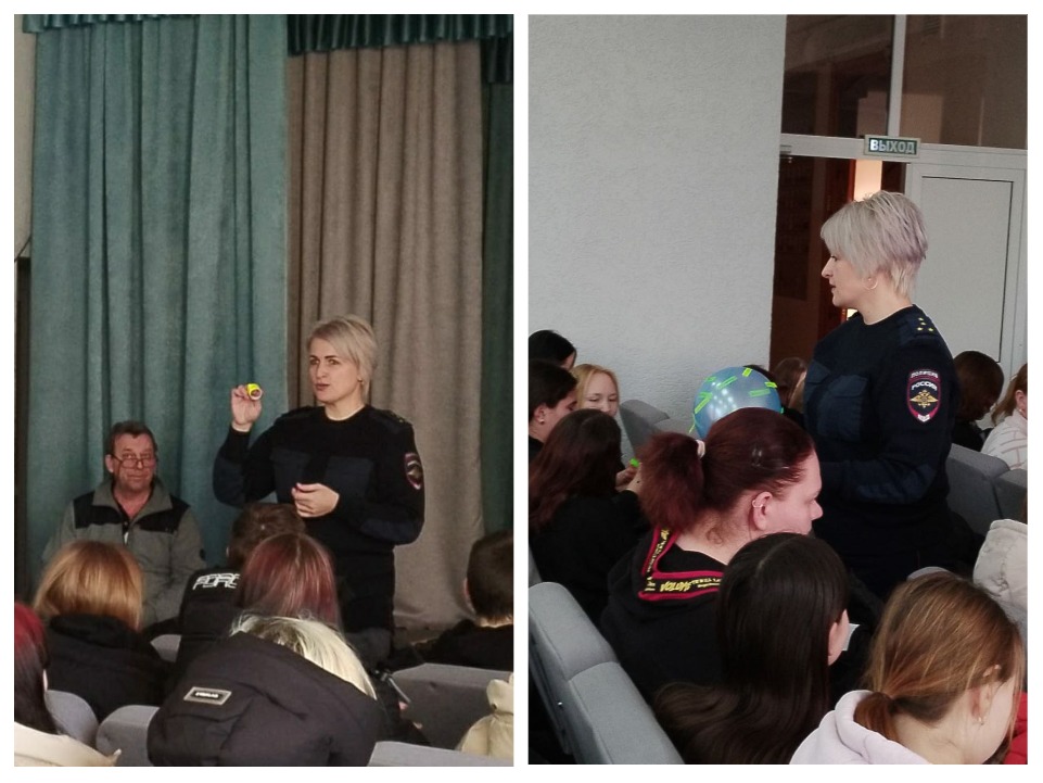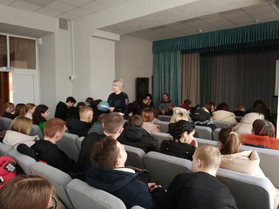 ![]() «Чтобы не случилось беды» В рамках месячника по военно – патриотическому воспитанию, который традиционно проходит в Славгородском педагогическом колледже с 24 января, студенты 11, 12, 15 и 16 групп встретились с сотрудником ГИБДД г.Славгорода, капитаном полиции О.А.Борисенко. Ольга Алексеевна обратилась к ребятам с просьбой неукоснительного соблюдения правил безопасности дорожного движения, ведь ежедневно мы можем наблюдать ситуацию, говорящую о том, что по-прежнему продолжают иметь место дорожно-транспортные происшествия, в которых участники дорожного движения получают телесные повреждения различной степени тяжести, находясь на проезжей части и в качестве водителей, и в качестве пассажиров, и в качестве пешеходов. Инспектор в очередной раз напомнила студентам о необходимости использования светоотражающих элементов на одежде, ведь в зимний период световой день становится особенно коротким, и опасность того, что вас может не заметить водитель, увеличивается. Светоотражающие элементы помогут значительно снизить травматизм среди пешеходов. Ольга Алексеевна еще раз коснулась темы безопасного передвижения по тротуару, а также актуальных вопросов, связанных с опасностью использования телефонов, наушников и т.д. во время передвижения. В финале встречи Ольга Алексеевна провела с ребятами небольшую психологическую игру, главная цель которой – показать, насколько важно соблюдать ПДД. Автор: В.В. Агалакова, заместитель директора колледжа Фото предоставлены автором