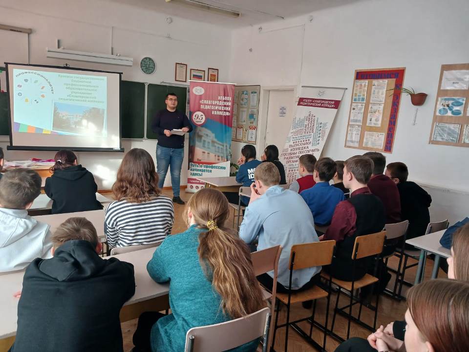 ![]() День российского студенчества В День российского студенчества учащиеся 8-9 классов филиала МБОУ «СОШ № 13» - «СОШ № 9» узнали о Федеральном проекте «ПРОФЕССИОНАЛИТЕТ» во время профориентационного консультирования, которое провел Андрей Кен, советник директора по воспитанию Славгородского педагогического колледжа. Встреча со школьниками была организована для информирования об актуальных и перспективных специальностях, реализуемых по направлению «Педагогика» в условиях проекта «ПРОФЕССИОНАЛИТЕТ», а также о требуемых навыках и качествах для успешного трудоустройства после получения диплома об окончании колледжа. Ребятам было рассказано о вступительных испытаниях и сроках обучения. Андрей Сергеевич рассказал о своих студенческих годах, проведенных в стенах колледжа, о своих первых профессиональных успехах, о том, почему он решил после освоения специальности «Коррекционная педагогика в начальном образовании» стать преподавателем русского языка и советником директора по воспитанию. Кроме этого он рассказал, какие проекты реализуют студенты, в каких движениях, акциях, конкурсах они принимают активное участие. Во время беседы ведущий дал ценные советы о том, как достичь успеха в учебе и общественной деятельности. Он призвал ребят не бояться новых вызовов и стремиться к саморазвитию. Стоит отметить, что встреча с успешным выпускником колледжа в День российского студенчества дала возможность школьникам задать гостю все интересующие их вопросы. Напомним, что Федеральный проект «ПРОФЕССИОНАЛИТЕТ» стал одной из инициатив социально-экономического развития Российской Федерации до 2030 года. Среди ключевых инициатив проекта – создание образовательно-производственных центров (кластеров) для комплексной перезагрузки всей системы среднего профобразования. В 2023 году Славгородский педагогический колледж подписал соглашение о партнерстве в образовательном кластере «Педагогика». В него также вошли Барнаульский государственный педагогический колледж имени В.К. Штильке, Бийский педагогический колледж имени Д.И. Кузнецова, Рубцовский педагогический колледж, Комитет по образованию г. Барнаула, Управление образования Администрации г. Бийска, Комитет администрации г. Славгорода Алтайского края по образованию, Управление образования г. Рубцовска. #Профессионалитет #Амбассадоры_Профессионалитета Автор: Андрей Сергеевич Кен, советник директора по воспитанию и взаимодействию с детскими общественными объединениями Славгородского педагогического колледжа Фото предоставлены автором
