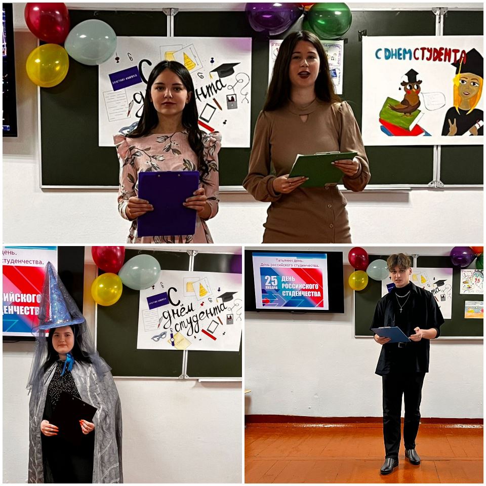 ![]() «Профессиональный» праздник российских студентов Есть в морозном январе день, окрашенный радостным, каким-то весенним настроением – это Татьянин день, День всех студентов. Это праздник молодости, оптимизма и надежд, он горячо любим всеми, в ком сильна тяга к знаниям! Студенческая пора – время, когда закладываются основы профессионального становления, реализуются первые планы и амбиции. Трудно, наверное, отыскать в России студента, не знающего о существовании Дня студента и не отмечающего этот праздник. Указ президента России Владимира Путина № 76 от 25 января 2005 года «О Дне российского студенчества» официально утвердил «профессиональный» праздник российских студентов. Студенты общежития нашего колледжа отметили свой профессиональный праздник традиционно весело и шумно! Вначале виновники торжества собрались в зале на праздничное мероприятие, в ходе которого они познакомились с историей праздника из презентации «Татьянин день», посмотрели видеоролик, где студенты общежития давали интервью, отвечая на вопрос «С чем у вас ассоциируется студенчество?». Из «Ленты времени», в которой были представлены фотографии, студенты узнали о жизни студентов колледжа с 1929 года и по сегодняшний день: о первых выпусках, условиях проживания, учёбе и отдыхе, героических и трагических днях, достижениях и др. В зале царила тёплая, душевная атмосфера, которую передавали участники программы! Она ещё раз показала, что наши студенты – настоящие студенты: весёлые, талантливые, энергичные, жизнерадостные! Они всегда готовы делиться своим позитивом, творить, радовать всех своими успехами, делиться энергией друг с другом. Замечательно продекламировали стихотворение Эдуарда Асадова «Студенты» Вера Мезенцева и Полина Реймер. Бесподобно сыграли роль преподавателя и студента Владислав Козинский и Виктор Мерзляченко в сценке «Сдача зачёта». Улыбки и смех вызвали выступление Валерия Воронина, который поведал историю о праздновании Дня рождения в общежитии и выступление Даниила Ефименко с «Письмом студента домой». Вниманию присутствующих был предложен необычный гороскоп, ведь студенты – тоже люди! А посему даже студент-скептик хоть раз обращал свой взор к высшим силам. В каждой шутке есть доля правды, но какая она, ребята сами должны для себя решить. Шикарно роль астролога исполнила Анастасия Горкун! Студентки первого курса порадовали зрителей своим выступлением, исполнив яркий, современный танец, в завершении мероприятия прозвучала песня-пожелание «Пускай вам светит солнце». А вечером студенты обменивались своими впечатлениями за праздничным столом и во время зажигательной дискотеки! День студенчества получился насыщенным и содержательным. Кроме того, студенты провели конкурс плакатов. Замечательные работы у Красновой Виолетты, Виктории Миллер, Анастасии Гречаниковой, Анны Щитовой, Полины Реймер, Валерии Бурковой. Желаем всем студентам яркой, наполненной позитивными событиями студенческой жизни, прочных знаний, новых открытий и побед! Будьте лучшими в выбранной вами профессии, верьте в свои силы, дерзайте, творите!