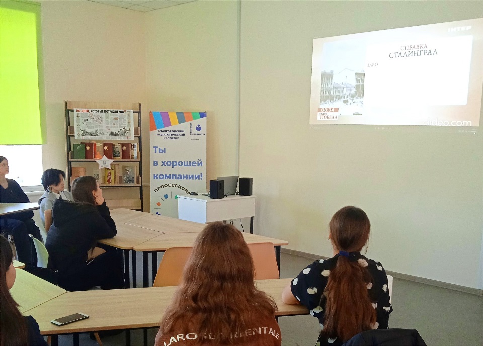 ![]() «Не ради славы и наград мы защищали Сталинград» - уроки мужества в библиотеке В библиотеке колледжа завершилась серия уроков мужества, посвященных Сталинградской битве, проведенная в рамках Всероссийского месячника оборонно-массовой работы и военно-патриотического воспитания. Организаторами этого мероприятия выступили преподаватель ОБЖ А.В. Хохлов и библиотекарь М.В. Шаравара. Уроки мужества были приурочены к 2 февраля – дню окончания Сталинградской битвы, одного из самых кровопролитных сражений Великой Отечественной войны. Студенты первого курса колледжа получили возможность погрузиться в историю героической эпохи и узнать о подвиге советских воинов, которые отстояли свою Родину на берегах Волги. В ходе уроков студенты узнали о том, какими трудностями пришлось пройти советским войскам, какую роль сыграла Сталинградская битва в истории нашей страны, и какие уроки мужества и самопожертвования можно извлечь из этого знаменательного события. Проведение таких уроков не только помогает студентам расширить свои знания о истории, но и формирует у них чувство патриотизма, уважения к подвигу предков и ответственности перед своей страной. Автор: Шаравара М.В., ведущий библиотекарь Фото предоставлены автором