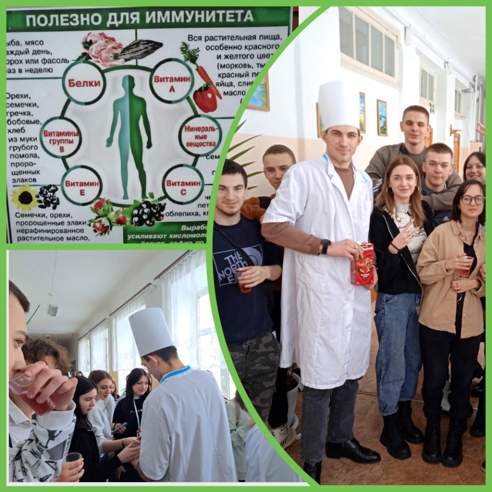 ![]() 1 марта - Всемирный день иммунитета Сегодня, в нашем колледже, прошел интересный и полезный флэш-моб, посвященный Всемирному дню иммунитета. Студенты и преподаватели собрались вместе, чтобы отметить этот важный день и поддержать свое здоровье. Главными организаторами флэш-моба стали Доктор Пилюлькин и Айболит – персонажи, символизирующие заботу о здоровье и иммунитете. Они не только раздавали витамины в виде гранатового сока, но и проводили интересные игры. Основная цель флэш-моба заключалась в том, чтобы напомнить людям о важности заботы о своем здоровье и иммунитете. Ведь крепкая иммунная система – это залог отсутствия различных заболеваний, в том числе и аллергических реакций. В ходе флэш-моба было подчеркнуто, что здоровье – это самое ценное, что у нас есть, и что укрепление иммунитета играет ключевую роль в поддержании его. Доктор Пилюлькин и Айболит призывали всех следить за своим здоровьем, правильно питаться, вести активный образ жизни и регулярно употреблять овощи о фрукты. День иммунитета в колледже стал отличным поводом для всех студентов и преподавателей задуматься о своем здоровье. Надеемся, что эта акция станет традицией и будет проводиться каждый год, напоминая всем о важности заботы о собственном здоровье. Автор: М.В. Шаравара, ведущий библиотекарь Фото предоставлены автором