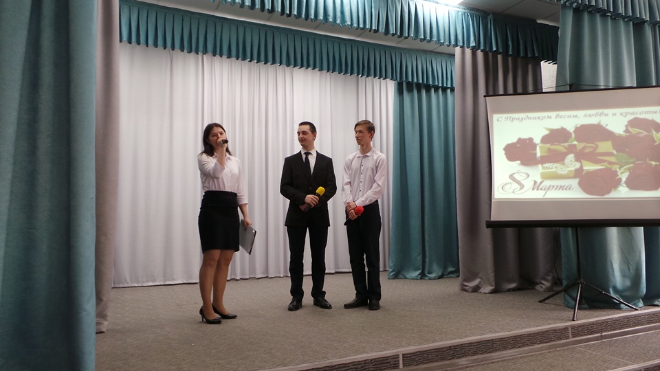 ![]() «С любовью о любимых!» 6 марта в актовом зале Славгородского педагогического колледжа состоялся праздничный концерт «С любовью о любимых!», посвященный Международному женскому дню. Организаторами и активными участниками концерта выступили студенты 33 группы под руководством куратора Т.С. Хижовой. На протяжении всего концерта зрителей радовали своим юмором и ораторским мастерством ведущие Никита Медведев, Кирилл Лазутов, Дарья Подгорная и Полина Реймер, которые решили поздравить всех девушек и женщин в необычной форме и подарили им праздничное телевидение, состоящее из разнообразных поздравительных программ. Зрители увидели праздничную программу новостей, в которой корреспонденты Анна Григорьева и Юлия Старцева взяли интервью у прекрасных представительниц административной команды колледжа и выяснили, как, по их мнению, должен проходить идеальный праздник весны и красоты. Живой интерес у присутствующих в зале вызвала программа «Своя игра», участниками которой стали студенты 4 курса Алина Мантлер, Анастасия Могилевская и Константин Тищенко. Ведущие телеигры Ксения Зайковская и Олеся Судоргина предложили участникам угадать своих кураторов по предложенной детской фотографии или фотографии личной вещи преподавателя, а также по голосу. Кроме этого, зрители получили возможность своими глазами увидеть участников телепроекта «Минута славы» Романа Заковряшина и Полину Реймер, которые прочитали проникновенное стихотворение, посвященное всем женщинам, носящим гордое звание «мама». Не остались в стороне от поздравлений и наставнические пары колледжа, которым студенты 33 группы посвятили мультфильм «Маша и медведь» в своей собственной интерпретации. На протяжении всего концерта зрителей радовала своими музыкальными приветами и поздравлениями ведущая программы «Утренняя почта» Виктория Щербакова. В этот день ни одна представительница прекрасного пола не осталась без внимания, получив в свой адрес добрые и нежные поздравления. Приятным сюрпризом для преподавателей, студенток и сотрудниц колледжа стало видеообращение от преподавателей предметно-цикловой комиссии физического воспитания и ОБЖ, поздравительные выступления выпускников колледжа и молодых преподавателей. Также с поздравительной речью к присутствующим обратилась директор колледжа Г.И. Петерс. Автор: Т.С. Хижова, куратор 33 группы Фото предоставлены автором