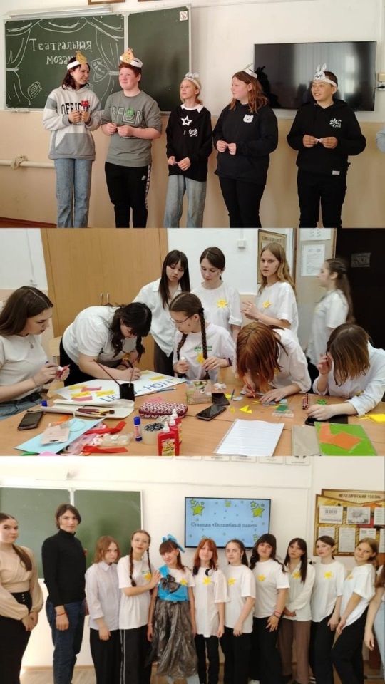 ![]() В Славгородском педагогическом колледже прошел День вожатого Мероприятие под таким названием прошло 27 апреля 2024 года для обучающихся седьмых и десятых классов, инициаторами которого стали работодатели – соисполнители Регионального проекта по созданию психолого-педагогических классов, где с сентября 2023 года реализуется программа внеурочной деятельности по педагогике и психологии. В Дне вожатого приняли участие 72 школьника и 5 их руководителей – учителей из образовательных организаций Благовещенского, Табунского районов, города Славгорода и Яровое, а также преподаватели и студенты, являющиеся амбассадорами КГБПОУ «Славгородский педагогический колледж». Напомним, что вожатская деятельность - это вид педагогической работы, связанный с организацией и проведением досуговых и образовательных мероприятий для детей и подростков на территории летнего лагеря или детского оздоровительного центра. Вожатская деятельность имеет целью содействовать физическому, психологическому и духовному развитию детей, а также создавать благоприятные условия для их отдыха и общения. День вожатого, организованный в СПК – яркое, красочное, эмоциональное мероприятие, но самое главное – имеющее большую познавательную и методическую ценность, так как в течение всего дня школьники овладевали профессиональными навыками и компетенциями вожатого. В ходе мероприятия ребята посетили 6 мастер-классов, в которых смогли не только приобрести новые знания и практический опыт в разных областях компетенций, но и продемонстрировать свои собственные способности и личностные качества. Встреча началась в актовом зале, где ведущие мероприятия поприветствовали всех участников, зарядили их энергией и позитивными эмоциями с помощью утренней зарядки и музыкальных номеров. Первый мастер – класс «Визитная карточка отряда» позволил ребятам подобрать название, девиз и приветствие для своей команды. С помощью различных подручных материалов, а именно: картона, бумаги, фетра, красок, маркеров, атласных лент школьники самостоятельно изготовили персональную эмблему отряда, придумали слова для ее защиты. На мастер-классе «Отрядные песни» участники мероприятия познакомились с песнями, которые традиционно поют в летних оздоровительных лагерях и площадках. Организаторы мастер - класса «Отрядный уголок» предложили ребятам разработать для своей команды отрядный уголок, используя различные варианты шаблонов, макеты цветовых решений и дизайнерские способы стилизации подобранного материала. В мастерской «Игровой калейдоскоп» командам предложили актуальные и очень интересные массовые игры с залом. В ходе мастер – класса ребята не просто приняли участие в игровых ситуациях, но и подготовились к самостоятельному их проведению. Мастер – класс «Театрализованная мозаика» был направлен на формирование у учащихся навыков актерского мастерства и творческих способностей. Ребята познакомились с особенностями театра – экспромта, научились организовывать и проводить небольшие театрализованные постановки, подбирать сценический материал к ним. По мнению школьников, все мастерские были полезные и увлекательные, но самым запоминающимся мастер – классом явился «Волшебный пакет». В этой мастерской ребята учились изготавливать тематические сценические костюм