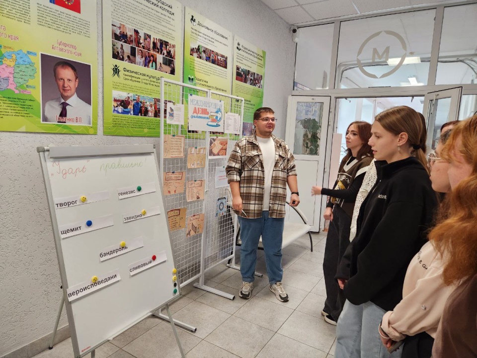 ![]() Международный день распространения грамотности Ежегодно во всем мире 8 сентября отмечается Международный день грамотности. Свою историю он отсчитывает с 1966 года, когда по итогам Всемирной конференции министров образования в Тегеране ЮНЕСКО учредило праздник. Датой выбрали день открытия проходившего мероприятия. В Славгородском педагогическом колледже советник директора по воспитанию А.С. Кен провел выставку и акцию «Пиши грамотно». На выставке представлена краткая информация о данном празднике, а также правила написания слов в русском языке. Студенты колледжа активно приняли участие в выполнении задания «Ударь правильно». Им необходимо было расставить в словах ударение. И вот правильные ответы ударения: слИвовый, вероисповЕдание, завИдно, щемИт, гЕнезис, твОрог и творОг. Международный день грамотности – праздник, который напоминает о важности получения знаний и постоянного развития как для отдельного человека, так и для общества в целом. На протяжении многих веков человек тянется к познанию всего, что его окружает. Грамотный человек всегда вызывал уважение, на него равнялись, к нему прислушивались.