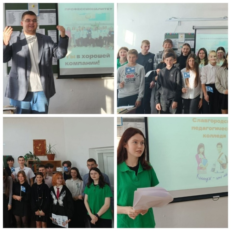 ![]() Осенний сезон популяризации Федерального проекта ПРОФЕССИОНАЛИТЕТ открыт! 14 октября амбассадоры Валерий Воронин, Александр Белан, Виктория Витт, Ксения Кривых с преподавателями Славгородского педагогического колледжа – Андреем Кеном и Снежаной Духаниной открыли осеннюю серию мероприятий популяризации Федерального проекта «Профессионалитет». И первым в списке - Всероссийский классный час «Профессионалитет: Ты в хорошей компании!» Посланники проекта побывали в Гришковской СОШ и её филиале Николаевской СОШ Немецкого национального района. Встреча прошла с учащимися 6 - 11 классов. Более 80 - ти школьников узнали об особенностях обучения в учреждениях СПО в условиях реализации Федерального проекта. Амбассадоры познакомили ребят с картой карьерного роста выпускников регионального кластера «Педагогика». Особое внимание было уделено Славгородскому педагогическому колледжу, который является одним из региональных сетевых участников проекта. Амбассадоры отметили, что колледж активно взаимодействует с организациями - работодателями Славгородского образовательного округа. Это позволяет студентам осваивать передовой педагогический опыт в реальных условиях образовательного процесса. Общение с потенциальными абитуриентами СПО завершилось увлекательным квизом. Время пролетело незаметно в дружеской, доверительной атмосфере. Снежана Игоревна и Андрей Сергеевич ответил на все вопросы и пригласил присутствующих на Единый день открытых дверей ПРОФЕССИОНАЛИТЕТА, который состоится в колледже 19 ноября в 11.00. Ребята активно участвовали в обсуждениях, получили информационную брошюру, памятный знак проекта и выразили желание обязательно побывать на профессиональных пробах в колледже.