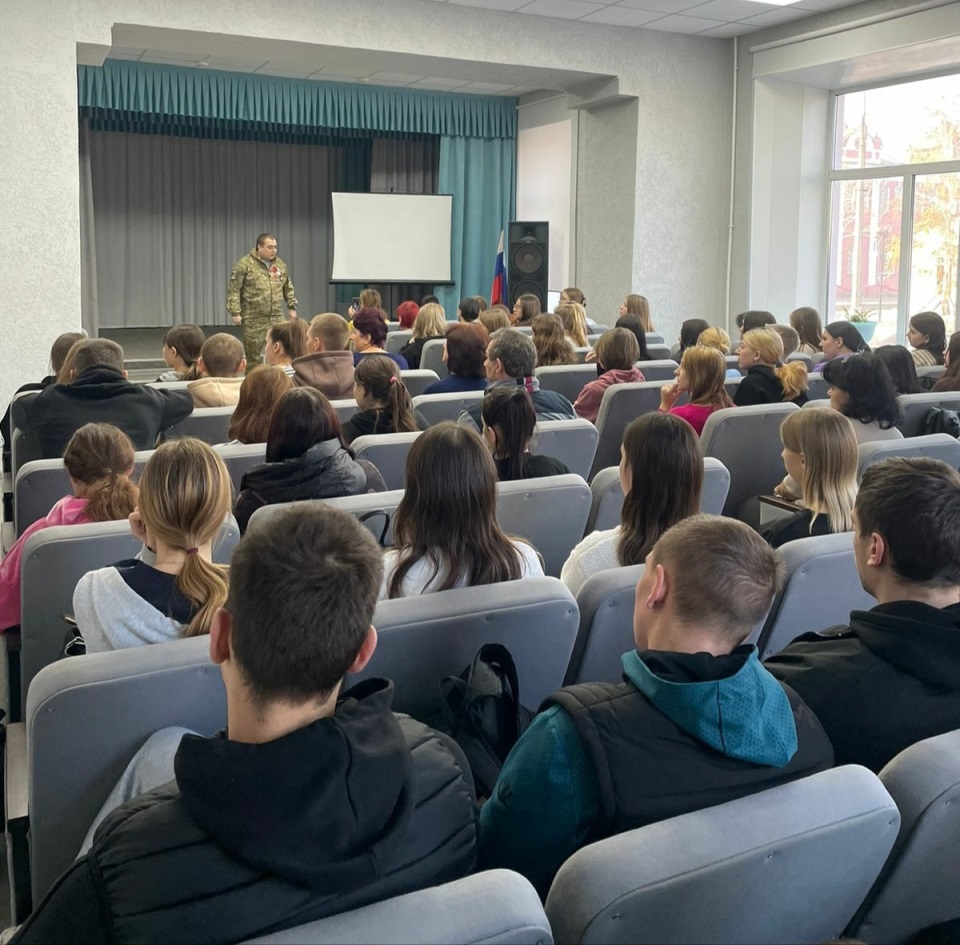 ![]() Герои - рядом 15 октября 2024 года в Славгородском педагогическом колледже состоялась встреча с участником специальной военной операции на Украине, майором Дмитрием Владимировичем Леоновым. У студентов колледжа возникла возможность прямого диалога с участником исторических событий современной России. Сначала был небольшой экскурс в историю, а затем воин рассказал ребятам о своем боевом пути, о ранениях, о наградах, поделился с ребятами чувствами, которые испытывает на войне, о преодолении страха и вере в победу. Студенты и преподаватели слушали Дмитрия Владимировича с большим интересом, задавали вопросы. Он рассказал ребятам о необходимости служить в армии, о любви к Родине, о выполнении служебного долга перед своим народом. Выступление было очень искренним, проникнутым чувством любви к своему Отечеству, к малой родине – и это неспроста, ведь Дмитрий Владимирович – уроженец г. Славгорода, выпускник средней школы № 13. Хочется отметить, что наш земляк увлекается литературой и является автором книги «Записки сумасшедшего капитана», посвященной его боевым товарищам. После общения парни жали руку воина и благодарили его, а девочки со слезами на глазах делали с ним фотографии. Мы уверены, что такие встречи способствуют воспитанию чувства гордости за свою страну, ведь на конкретном примере студенты увидели, что настоящие герои живут рядом, что мужество, храбрость, любовь к Родине – это качества настоящего человека. Скоро у Дмитрия Владимировича заканчивается отпуск, и он возвращается на поле боя – пожелаем же ему и всем нашим бойцам, среди которых много и выпускников Славгородского педагогического колледжа, силы, здоровья и, конечно же, скорейшей победы и возвращения домой. Автор: В.В. Агалакова, заместитель директора колледжа Фото предоставлены автором