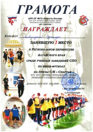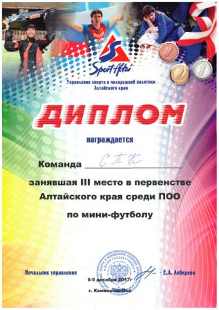 футболу, а также с 3 местом в первенстве Алтайского края среди