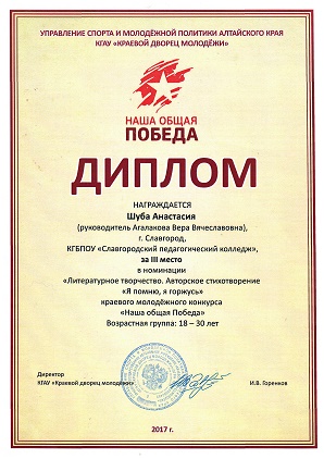 группа 14-17 лет) 3 место заняла студентка Славгородского