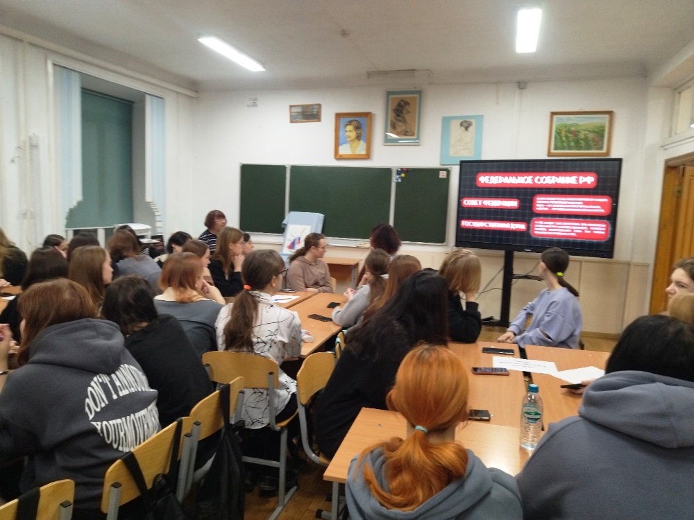![]() «Разговоры о важном»: как пишутся законы? 16 декабря 2024 года в рамках «Школы компетенций» для молодых классных руководителей куратор Н.А.Валиневич провела «Разговоры о важном» для 15 и 25 групп. Как известно, законы – это основа порядка и справедливости в обществе, инструмент, обеспечивающий безопасность, защиту прав и свобод каждого человека. Они создаются для решения актуальных задач, отражая потребности и запросы общества, а их соблюдение укрепляет уважение к правопорядку и взаимную ответственность граждан. Знание законов помогает не только ориентироваться в правах и обязанностях, но и активно участвовать в жизни общества, вносить свой вклад в его развитие, делая будущее более справедливым и устойчивым. Именно этому и была посвящена беседа Натальи Анатольевны со студентками дошкольного отделения. Ребята рассуждали о том, что такое законы, какова их необходимость, как они обеспечивают полноценную жизнь общества. Затем студенты обсуждали этапы реализации правотворческой деятельности, то есть процесс создания закона: от законодательной инициативы до его принятия и вступления в силу, а также причины появления новых законов как ответа на запросы общества и вызовы времени. В форме групповой работы студентам было предложено разработать локальный акт о внешнем виде обучающихся образовательных учреждений, а потом обсудить его и внести поправки. В финале занятия студенты познакомились с деятельностью Молодежного парламента при Государственной Думе Федерального Собрания Российской Федерации и обсудили возможность участия молодежи в законодательных инициативах. Автор: В.В. Агалакова, заместитель директора колледжа Фото предоставлены автором