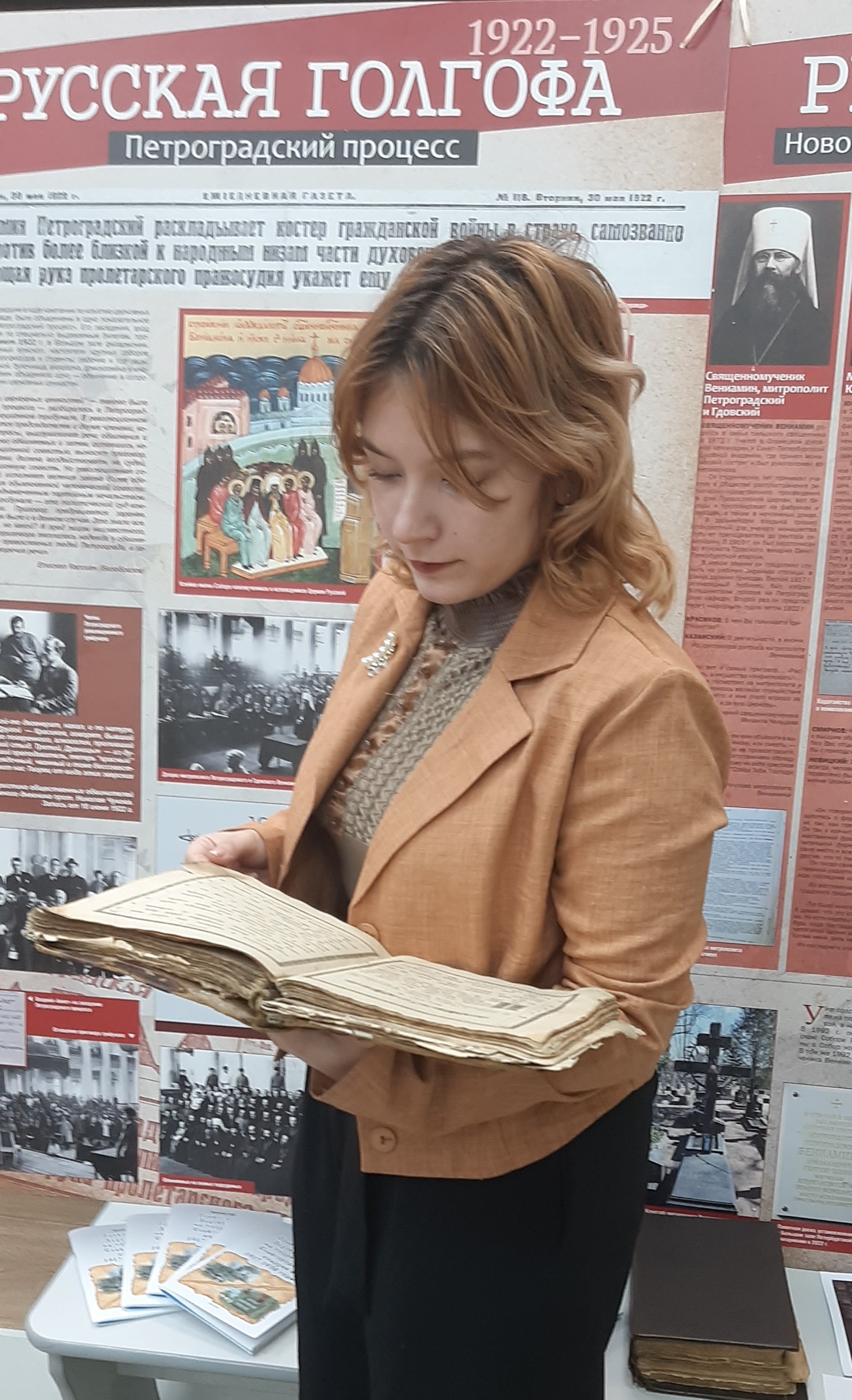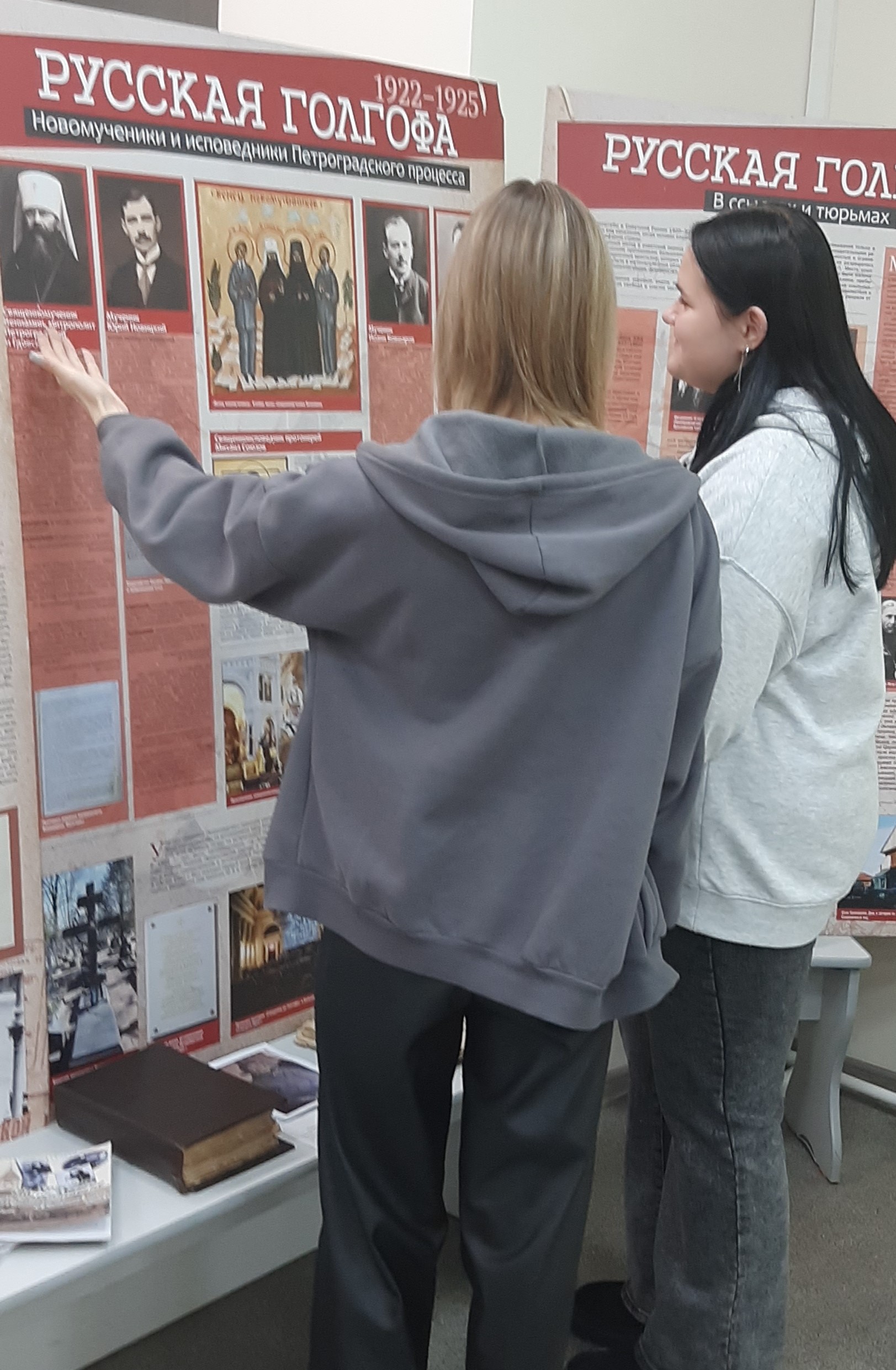 ![]() В колледже открылась передвижная выставка «Русская голгофа» С 16 января в библиотеке Славгородского педагогического колледжа была открыта передвижная выставка под названием «Русская голгофа: 1922 - 1925», посвященная подвигу Новомучеников и исповедников Церкви Русской. Выставка представлена 10 планшетными стендами по истории Церкви и подвига новомучеников центра России и 4 стендами по истории Алтайского края. Так же на выставке представлены экспонаты: старинные книги и иконы, фотографии, принадлежащие людям того непростого времени. Миссия выставки - восстановление исторической справедливости, максимально возможное сохранение для будущих поколений духовных и эстетических ценностей, созданных погибшими за веру и церковь людьми. Для студентов и преподавателей СПК, посетивших библиотеку 16 и 17 января, был проведен краткий ознакомительный обзор выставки. Официальное открытие выставки «Русская голгофа: 1922 - 1925» состоится 20 января 2025 г. в 14.00. Автор: Н.В. Остролуцкая, ведущий библиотекарь Логотип из открытых источников