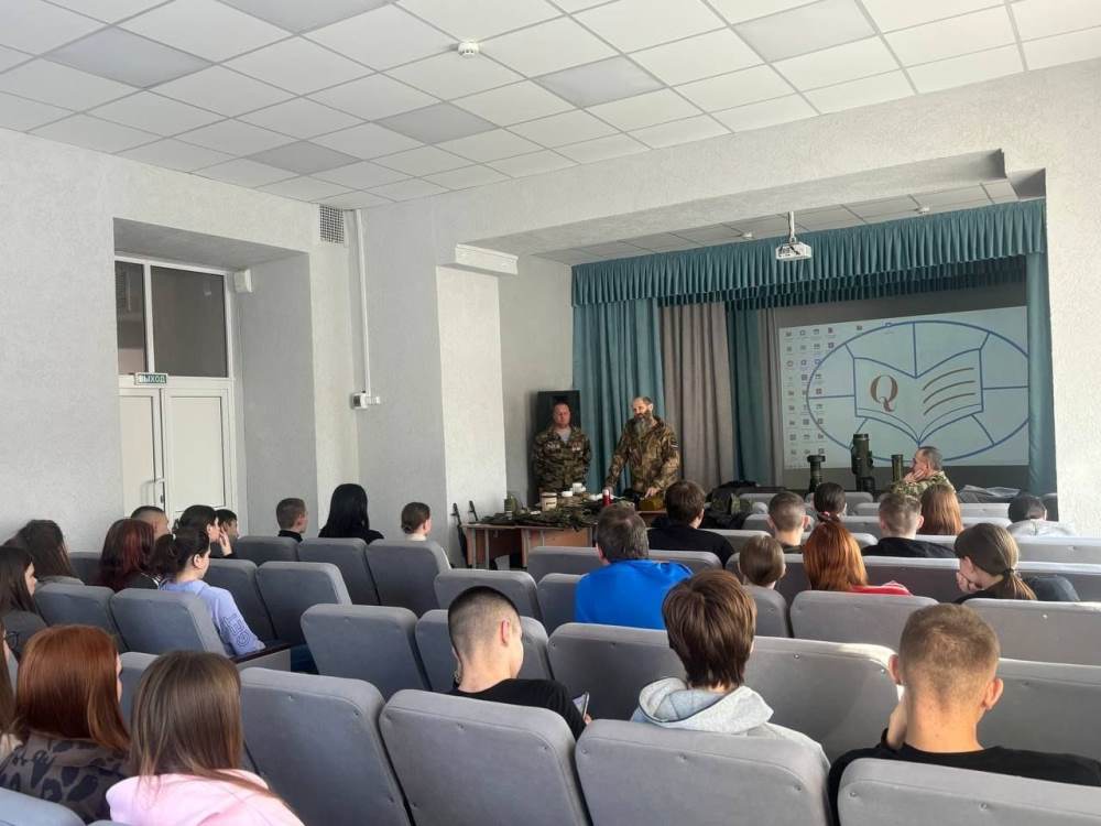 ![]() Встреча с воинами – ветеранами боевых действий 19 февраля в рамках Всероссийского месячника оборонно-массовой работы и военно-патриотического воспитания, посвященного Году Защитника Отечества, в колледже состоялась встреча студентов первого курса с Лисовенко Денисом Юрьевичем - ветераном боевых действий на Кавказе, на данном этапе он является руководителем исполкома союза ветеранов Афганистана по г. Славгороду. Кашкаревым Виталием Анатольевичем - ветераном Афганистана и участником СВО. Каган Борисом Михайловичем – участником боевых действий на Северном Кавказе. Студенты с особым вниманием слушали воинов, знакомились с настоящим оборудование вооруженных сил, примеряли на себя средства защиты: бронежилеты, шлемы. Автор: А.В. Хохлов, преподаватель ОБЖ и ЗР Фото предоставлены автором