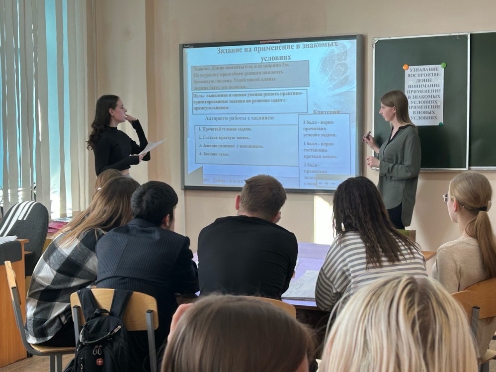 ![]() Профессиональные пробы по специальности «Преподавание в начальных классах» 20 февраля в КГБПОУ «Славгородский педагогический колледж» состоялись профессиональные пробы по специальности «Преподавание в начальных классах». Мероприятие организовали студенты 33 группы совместно с классным руководителем Куличенко В.Г. Профессиональные пробы – это профессиональное испытание или профессиональная проверка, моделирующая элементы педагогической деятельности, способствующая сознательному, обоснованному выбору профессии. Пройти данное профессиональное испытание смогли студенты 23 группы, попробовавшие себя в роли учителя начальных классов. Учитель начальных классов – это педагог, воспитатель, психолог, музыкальный руководитель, художник, актер и родитель в одном лице. Он проводит уроки по всем предметам, организует внеклассные мероприятия, детский отдых и досуг. Первый учитель решает непостижимое количество проблем и ежедневно отвечает на массу детских вопросов. И каждое решение или ответ должны быть грамотными, правильными, ведь полученное в начальной школе знание используется человеком на протяжении всей его сознательной жизни. В настоящее время в начальной школе актуальна проблема разработки уровневых учебных заданий. Это задания, которые различаются по своей степени сложности и объёму, ориентированы на разный уровень подготовки и способностей учеников. Они позволяют каждому ребёнку работать в зоне ближайшего развития, помогают создать ситуацию успеха. Куличенко Валентина Геннадьевна рассказала студентам 23 группы о видах уровневых заданий, как определяется их уровень сложности, особенности разработки алгоритмов и критериев оценки заданий. Студентки 33 группы Дерксен Наталья и Борисова Мария продемонстрировали разработанные уровневые задания по математике для второго и третьего классов. Студентка 31 группы Клокова Карина представила задания с использованием тестовой программы MyTest. Профессиональное испытание заключалось в создании одного из видов уровневых заданий, разработки алгоритма его выполнения, критериев оценки, предполагаемого ответа учеников и представлении задания для оценки экспертам. Экспертами в профессиональных пробах являлись учителя начальных классов МБОУ «СОШ №15» Рыбалкина Надежда Анатольевна и Смирнова Наталья Юрьевна, а также заведующий школьным отделением Радченко Ирина Алексеевна. Студентам были предложены шаблоны слайда и технологической карты. В течение 15 минут, под руководством студентов 33 группы, задание было выполнено. Самую высокую оценку экспертов получили студенты, разрабатывавшие задание на применение в знакомых условиях под наставничеством Дерксен Натальи и Клещук Виктории. Участники и гости мероприятия отметили теплую и доброжелательную атмосферу, поблагодарили за полученную информацию и приобретённые умения. Автор: В.Г. Куличенко, преподаватель Фото предоставлены автором