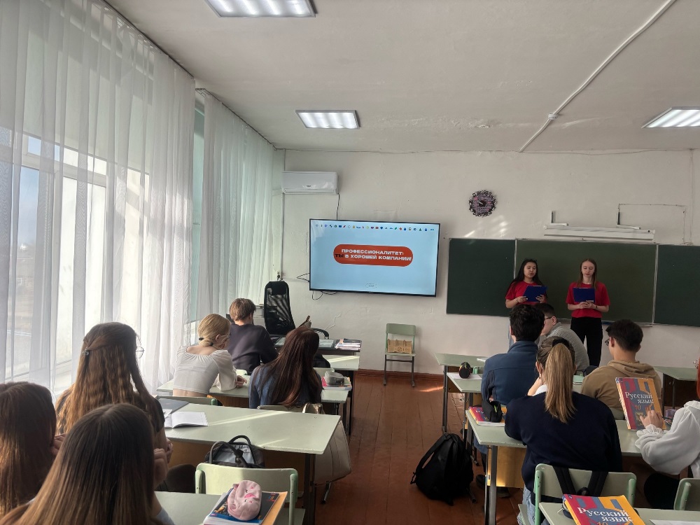 ![]() Всероссийский классный час 7 и 8 апреля профориентационная команда педагогического колледжа побывала в Немецком национальном, Табунском и Кулундинском районах. Амбассадоры Профессионалитета под руководством преподавателей провели информационные классные часы в МБОУ «Гальбштадтская СОШ», «Шумановская СОШ», «Подсосновская СОШ», «Табунская СОШ» и «Кулундинская СОШ № 1». Участниками стали учащиеся 9, 11 классов. Школьники узнали о востребованных профессиях, о перспективах работы по специальностям колледжа. На примере карьерных карт ребята увидели возможные пути для дальнейшего продвижения по выбранной специальности. В рамках Всероссийского классного часа амбассадорам удалось донести школьникам, что поступление в «Славгородский педагогический колледж» – это прекрасная возможность раскрыть свои таланты, и реализовать свои мечты.