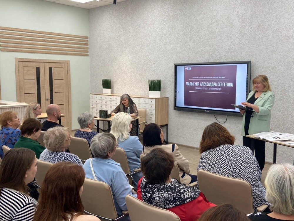 Рассудок призываю на подмогу: В свою очередь, Александра Малыгина спросила у присутствующих, пишет ли кто-то из них стихи. А о своей профессии она сказала, что это не только промысел свыше, но и труд, и обучение мастерству. К ее ответу подходят строчки: В очередной раз начинаю мучить тетрадный лист, Вечер закончился пожеланием продолжить общение с поэтом позже, фотографированием. Участники встречи не торопились расходиться, благодарили Александру за замечательные стихи, добрую атмосферу. Когда мы со студентками 15 группы выходили из здания библиотеки, я спросила – «Понравилась ли им встреча?». И было очень приятно услышать, что им было интересно, автор стихов отличается своим стилем и лиричностью. Хочется выразить слова благодарности работникам библиотеки за те минутки поэтического восторга, которые мы прожили вместе. Автор: Н.А. Валиневич, классный руководитель 15 группы Фото предоставлены автором