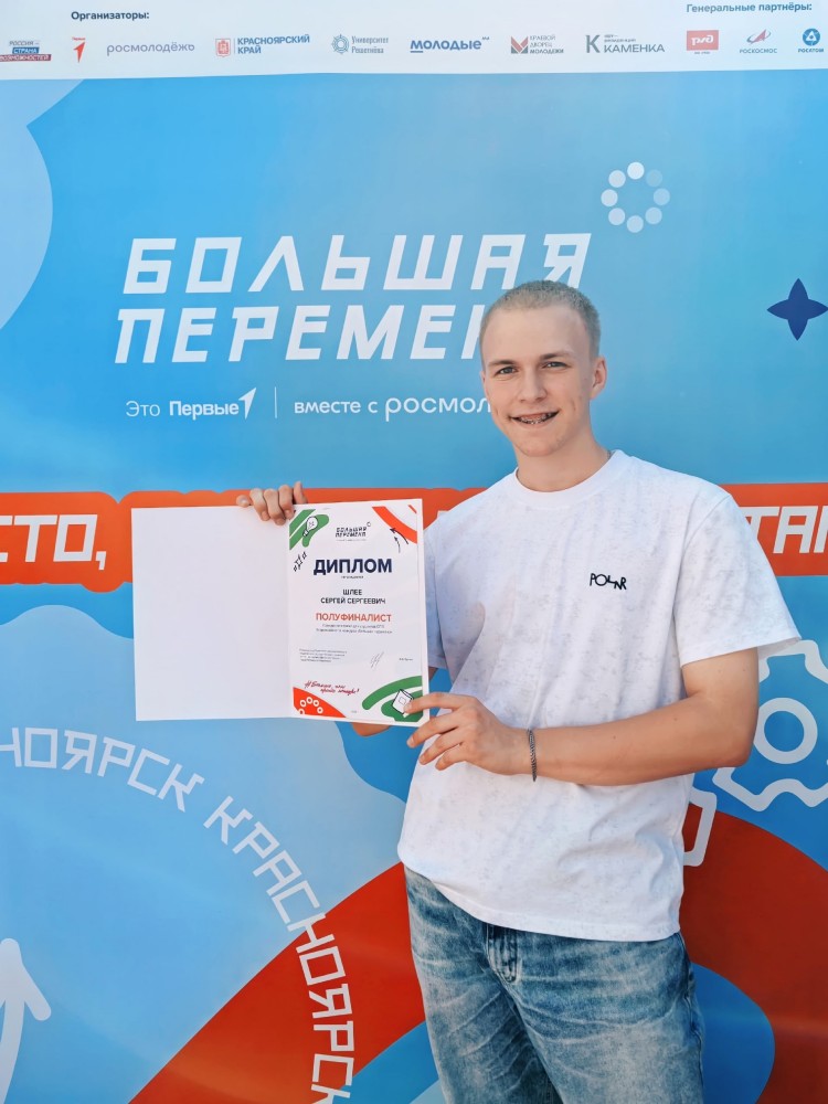 ![]() Студент СПК – в полуфинале «Большой перемены»! Студент 41 группы школьного отделения Славгородского педагогического колледжа Сергей Шлее принял в полуфинале Всероссийского конкурса «Большая перемена», который состоялся с 20 по 24 августа 2025 года в Красноярске. В конкурсе приняли участие 350 человек из 14 регионов Дальневосточного и Сибирского федеральных округов. Участники представляли Алтайский, Забайкальский, Камчатский, Красноярский, Приморский и Хабаровский края, Амурскую, Иркутскую, Кемеровскую, Новосибирскую и Томскую области, а также Республики Саха (Якутия), Хакасия и Бурятия. Тема конкурсных этапов — «От мечты к свершениям». На дистанционных этапах ребята рассказали о своей самой заветной мечте, а уже на очном этапе вместе с командой они сделали первый шаг к её реализации. Вот что рассказал Сергей Шлее о своем участии в конкурсе: «Несмотря на то, что я участвую в «Большой перемене» не в первый раз, каждый год для меня - как новый! Полуфинал конкурса - это, конечно же, новые знакомства, впечатления, радости, падения и взлёты, поддержка и помощь, заряженность и активность. Эти 5 дней пролетели очень быстро благодаря огромной включенности со стороны других ребят и организаторов. За эти дни я успел открыть для себя наикрасивейшие места города Красноярска, получить огромный багаж знаний, мнений и умений от других ребят, каждый из которых может посмотреть на одну и ту же ситуацию под разным углом. Я научился не сдаваться, верить в себя и идти вперёд, достигая новых вершин, как тяжело бы в этот момент не было! Один из самых важных и, конечно же, тёплых моментов в этой поездке - это окружение, прекрасные люди и знакомства! Я бесконечно благодарен тому, что эта небольшая смена была проведена мною в кругу таких открытых, добрых, понимающих и умеющих поддержать людей, которые положили один из самых важных «кирпичиков» в формирование моего представления об этом событии! Ну и, конечно же, я хочу выразить слова безграничной благодарности преподавателям Славгородского педагогического колледжа за поддержку и помощь, за то, что научили справляться с трудностями и открыли для меня бескрайний мир знаний!» Итоги полуфинала планируют объявить в октябре. Финалисты поедут в Нижний Новгород, где поборются за главный приз — 1 миллион рублей. От всей души пожелаем Сергею успехов и, конечно же, победы! Автор: В.В. Агалакова, заместитель директора колледжа Фото предоставлено автором