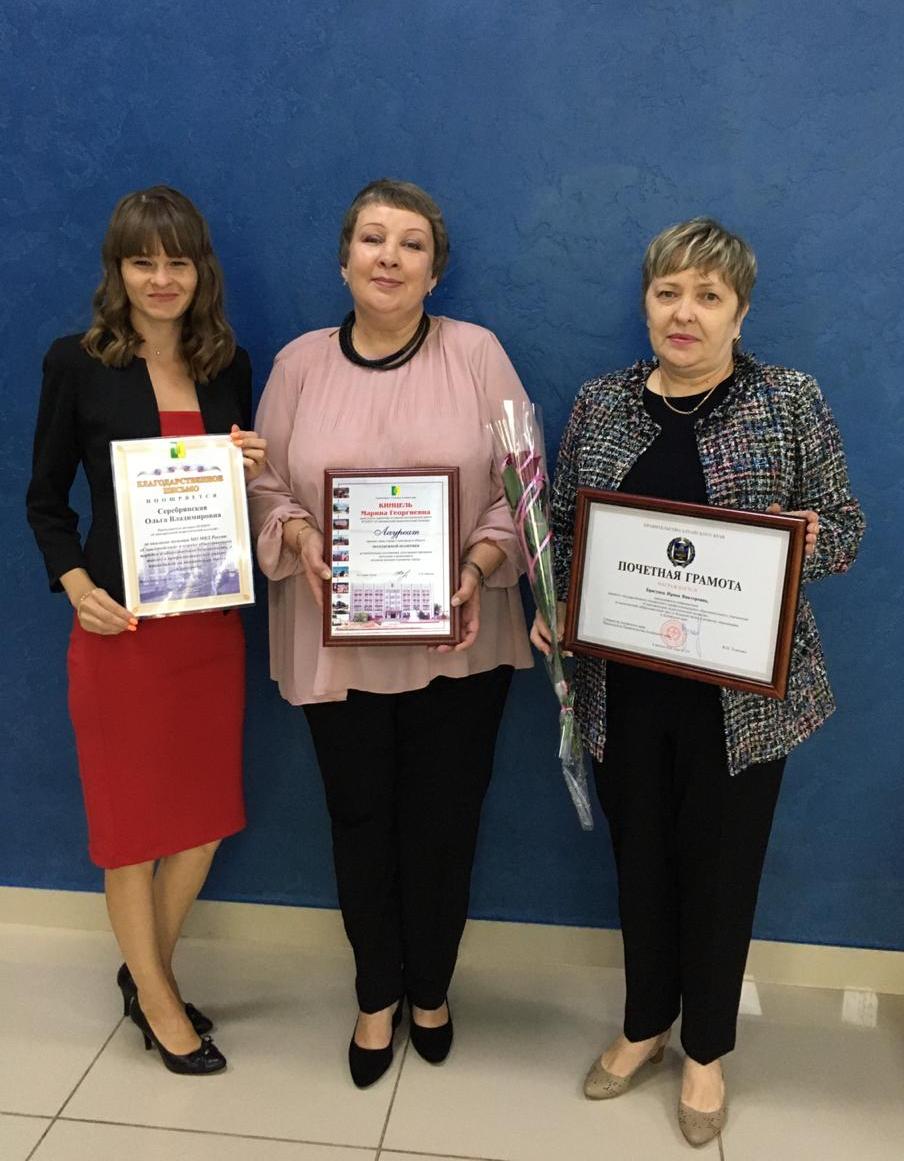 ![]() Награды преподавателям колледжа от главы Славгорода В 2020 году Славгород отмечает юбилей, 110 лет со дня своего основания. Праздничные мероприятия, посвященные Дню Города, традиционно прошли в конце августа. Ежегодно награды различного уровня и премию главы города получают представители различных сфер деятельности за значительные достижения в труде. В число награжденных в этом году вошли преподаватели колледжа. Ирина Викторовна Бригунец, преподаватель информатики награждена Почетной грамотой Губернатора, Председателя Правительства Алтайского края В.П. Томенко за многолетний добросовестный труд и большой вклад в развитие образования региона. Марина Георгиевна Кинцель, заместитель директора колледжа по научно-методической работе стала одним из тринадцати Лауреатов премии главы города в области молодежной политики за значительные достижения, являющиеся весомым вкладом в развитие муниципалитета и получившие признание населения. Ольга Владимировна Серебрянская, преподаватель истории отмечена Благодарственным письмом за оказание помощи МО МВД «Славгородский» в охране общественного порядка, общественной безопасности и профилактическую работу, проводимую на территории города.