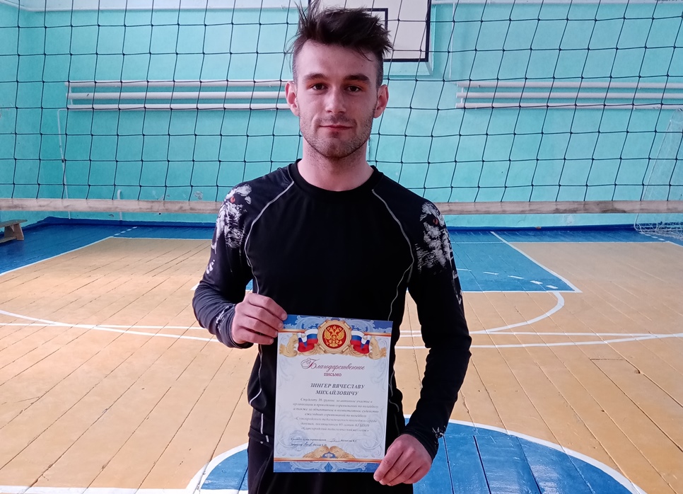От лица главного судьи соревнований, Колеговой К.С., хочется выразить благодарность Зингеру Вячеславу, студенту 36 группы, за активное участие в организации и проведении соревнований, а также за объективное и компетентное судейство. Поздравляем победителей и призеров соревнований по волейболу и желаем дальнейших успехов!