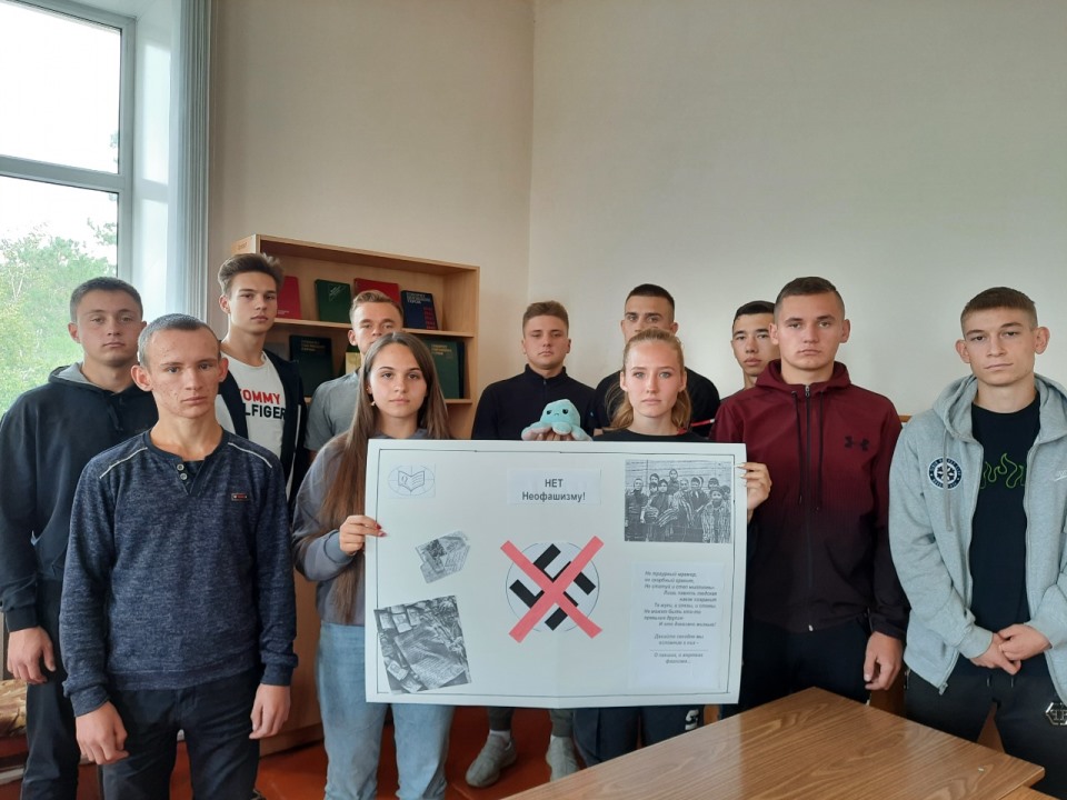 ![]() Международному дню памяти жертв фашизма посвящается… В 1962 году было принято решение считать каждое второе воскресенье сентября Международным днём памяти жертв фашизма, основной целью которого является борьба с идеологией возрождения фашизма. Сентябрь выбран неслучайно: на этот месяц приходятся как начало Второй мировой войны, так и её окончание. Это и стало одной из причин установления дня траура на сентябрьское воскресенье. Фашизм – самое страшное явление в истории XX века, но ещё страшнее то, что его идеи находят благодатную почву и сегодня. Этому должен воспрепятствовать весь мир, и день памяти жертв фашизма призван напомнить о том, какою ценой завоёвано счастье мирного неба над головой. Эта скорбная дата является напоминанием о тех страшных днях, когда миллионы людей гибли под снарядами, в концлагерях, в городах от катастрофического голода и болезней. Тысячи беззащитных пленённых людей гибли в ужасных муках в результате проведения над ними чудовищных «медицинских» экспериментов фашистских «учёных». В Славгородском педагогическом колледже под руководством воспитателя Ольги Александровны Стрельниковой и библиотекаря Марины Владимировны Шаравары прошла акция «Мы против фашизма». В библиотеке была подготовлена выставка «Говорят погибшие герои»: студенты узнали об истории возникновения этой трагичной даты, о вкладе славгородцев в Великую Победу и о Мемориале Памяти, где проходят торжественные мероприятия города. У фашистских преступлений нет срока давности. Человечество заплатило слишком высокую цену, чтобы избавиться от коричневой чумы. Кошмар Второй мировой не должен повториться никогда, а память о жертвах фашизма должна жить в веках! Мы должны уметь противостоять идеям фашизма, нацизма. К этому нас призывает кровь наших соотечественников, отданная за правое дело, за наше светлое будущее. ![]()