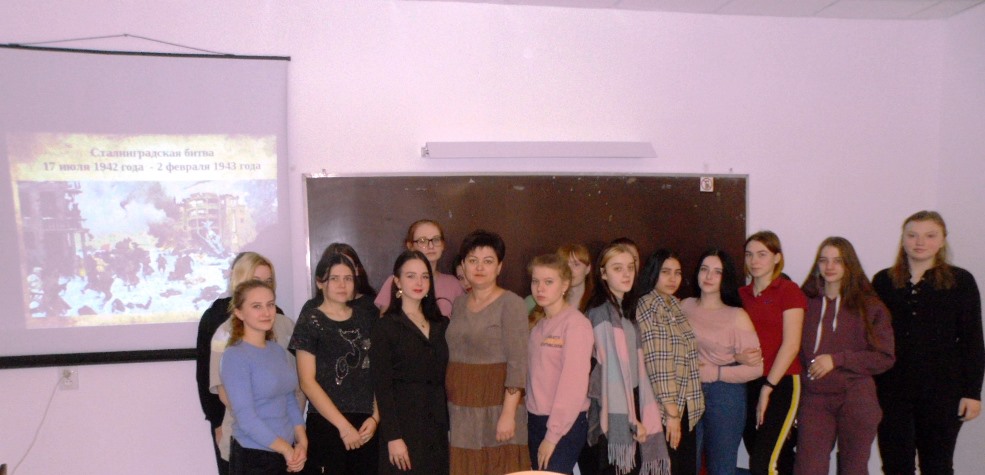 ![]() Урок Мужества «И пробил час. Удар обрушен первый,- 22 февраля в рамках проведения всероссийского месячника оборонно-массовой работы и военно-патриотического воспитания преподаватель Хохлов А.В. и библиотекарь Шаравара М.В. провели для групп первого курса час истории «Дорогами войны…Сталинградская битва». Военная история России знает немало примеров мужества и героизма, воинской доблести солдат на поле битвы и стратегического гения военачальников. На их фоне особо выделяется Сталинградская эпопея. 200 дней и ночей на берегах Дона и Волги, а затем у стен Сталинграда и непосредственно в самом городе продолжалась эта ожесточенная битва. Она развернулась на огромной территории площадью около 100 тыс. кв. км. Участвовало в этой грандиозной битве с обеих сторон на разных этапах боевых действий свыше 2,1 млн человек. По целям, размаху и напряженности боевых действий Сталинградская битва превзошла все предшествующие ей сражения мировой истории. Она была отмечена самыми кровавыми уличными боями в разрушенном Сталинграде и невероятным героизмом советских солдат трех фронтов. Гитлер хотел захватить город, который носит имя вождя СССР, и подавить дух врага, отсечь Кавказ от всего СССР, тем самым оставить Красную армию и советскую промышленность без топлива, зерна и иных жизненно важных ресурсов. Так же он планировал, победив Сталина в городе его имени, вовлечь в войну «сомневающихся» на тот момент Турцию и Японию. Победа СССР в Сталинграде переломила ход Второй мировой войны. Ни Турция, ни Япония, бывшие союзниками Германии, не рискнули начать боевые действия против Советского Союза. 2-е февраля 1943 года стало днем национального траура для Третьего рейха и сильным ударом по психике Гитлера, а для советских войск верой в ПОБЕДУ. ![]()