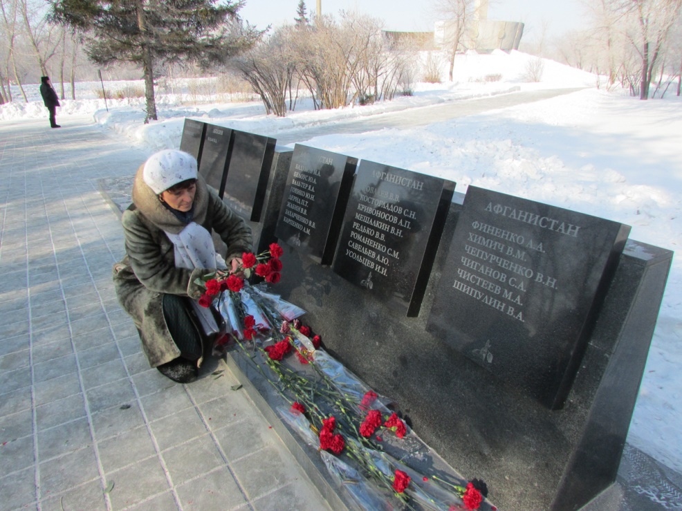 ![]() День памяти… День памяти о россиянах, исполнявших служебный долг за пределами Отечества, отмечается ежегодно 15 февраля. Дата была установлена в январе 2011 года, в связи годовщиной вывода советских войск из Афганистана. Она напоминает об этом событии, а также о более четырнадцати тысячах солдат и офицеров, не вернувшихся с афганской войны. Этот день - торжественный и печальный, он всегда проходит со слезами на глазах и с болью в сердце. Это день памяти о тех, кто отдал свой воинский долг, не предав присягу, кто выполнял государственный приказ, рискуя своей жизнью. Живы еще матери тех, кто не вернулся с афганской войны… Сколько выплакано слёз, сколько горя обрушилось на женщину в один миг! Но ни одна мать не сможет смириться со смертью сына… ![]() По традиции, торжественные мероприятия проходят у Мемориала воинов – интернационалистов. На памятных плитах высечены имена 57 солдат и офицеров, погибших в локальных конфликтах… Обучающиеся колледжа ежегодно принимают активное участие в Уроках мужества, встречах с воинами - интернационалистами, с теми, кто в те далёкие годы, были мальчишками, но вернулись с афганской войны. ![]() Студенты посещают выставки в городском музее, экскурсии. В этом году из музея ветеранской организации «РСВА» были представлены экспонаты - трофеи в городской музей: кинжалы, шефроны, карты, чётки, документы, награды, военное обмундирование и др. Был организован краткий экскурс по экспозициям музея. ![]() Мужество и героизм воинов не имеют срока давности! И мы чтим всех защитников интересов нашей Родины.Скорбим о тех, чья жизнь безвременно оборвалась в боях… Желаем здоровья и благополучия ныне живущим участникам боевых действий!