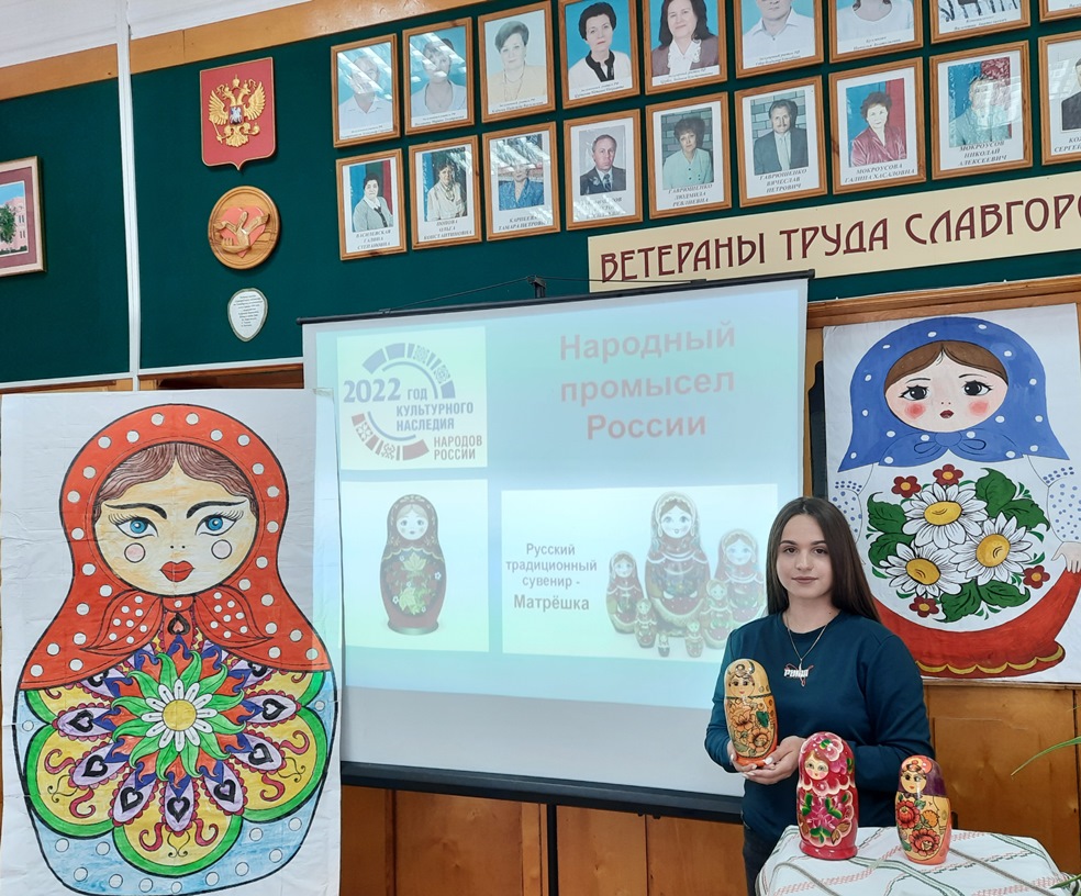 ![]() Матрёшка – душа России Покорил весь Божий мир Нашу Матрёшку знают и любят во всём мире – ни один турист не уедет из России без куклы-сувенира. Матрёшка является неофициальным символом России, это настоящее чудо света. Настоящее, поскольку была и остаётся творением человеческих рук. Чудо света – потому что удивительным образом игрушечный символ России перемещается по всему миру, не признавая никаких расстояний, границ. Сейчас она – не просто народная игрушка, хранительница исконной русской культуры: она и сувенир – памятная кукла, она – и драгоценный объект для коллекционирования. В рамках Года культурного наследия народов России, воспитатели Стрельникова Ольга Александровна и Алифанова Антонина Петровна подготовили исторический час «Матрёшка – душа России» с целью ознакомления с историей возникновения, видами, материалом изготовления самой популярной, самой простой и понятной деревянной игрушки. Активное участие в проведении мероприятия оказали Пономарёва Полина, Виктория Воронова, Анастасия Жданова, Богдана Пузыренко, Валерия Буркова. 24 октября 1900 года на Всемирной выставке в Париже посетители впервые увидели необычную игрушку. Румяная кукла Матрёна, крепко держащая бойкого петуха, открывалась – и из неё появлялась ещё одна яркая кукла, а за ней ещё, и ещё, и так до восьми фигурок. Нарекли куклу матрёшкой (производное от имени Матрёна, которое было весьма тогда популярным среди русских крестьянок). День, когда матрёшка покорила европейскую публику и была удостоена бронзовой медали парижской выставки, формально считается Днём рождения круглолицей куколки в платочке. Хотя, разумеется, в России с ней познакомились раньше. В начале XX века начался массовый вывоз матрёшек за границу. Матрёшка привлекает внимание не только детей, но и взрослых своей красочностью и неизменным «секретом». Эта уникальная разъёмная куколка, выполненная из дерева, стала настоящим символом России во всём мире. Она до сих пор нравится и взрослым, и детям. В её содержании, форме и отделке отразилась вся широта души русской, представления о мире, добре, красоте. Матрёшка – это не просто игрушка, это частичка каждого из нас, россиян. Студенты колледжа и гости, посмотрев презентацию, ознакомились с небольшой коллекцией из матрёшек, а также смогли не только полюбоваться, но и поиграть с « игрушкой с секретом!» Помимо традиционных кукол, позже появились тематические матрёшки, изображавшие, например, персонажи литературных героев. Тема сказок тоже всегда манила мастеров русской матрёшки. Иллюстрировались «Репка», «Иван царевич», «Курочка Ряба» и другие. Фантазия мастеров не знала границ. Этих тематических матрёшек также можно было увидеть в нашей небольшой экспозиции. Гости, посетив мероприятие, оставили тёплые отзывы. Орман Людмила Николаевна: «Очень интересно, познавательно. Спасибо за организацию этих мероприятий». Диана Осипова: «Очень понравилось, интересно! Можно было всё потрогать, подержать в своих руках и рассмотреть близко!» Автор: Стрельникова О.А. Фото автора