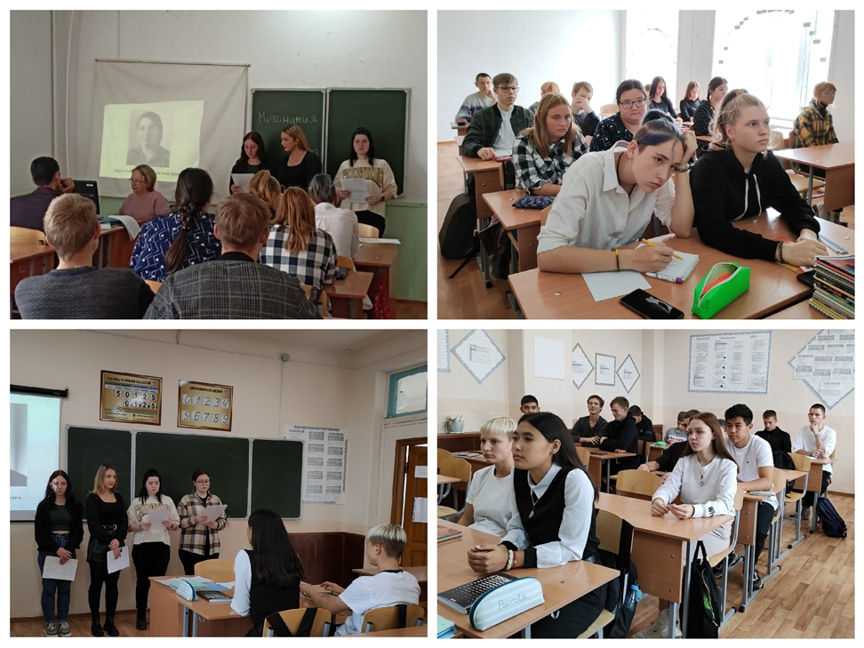 ![]() Труд педагогов в военное время 5 октября в группах нового набора были проведены тематические информационные часы по теме «Учителя в Великой Отечественной войне». Информационные часы провели студенты 31 группы: Кушнерова Екатерина, Горкун Анастасия, Момот Кристина, Риттер Инна. Сотни тысяч учителей выполняли свою благородную миссию в тылу врага, обучая детей. Именно о таких учителях наши информационные часы. Первокурсники узнали имена студентов, выпускников Славгородского педучилища 1937-1944 годов, которые работали учителями начальных классов в годы Великой Отечественной войны в Славгороде и в Славгородском районе. Так же познакомились с краткой биографией преподавателей-фронтовиков нашего учебного заведения - это Лисица Федор Семенович, Холодок Владимир Васильевич и др. Труд педагогов в военное время – это особая страница в истории нашего образования. Сегодня мы отдаем дань памяти людям, которые, не жалея сил, продолжали обучать школьников и студентов в годы войны Автор: Булгакова Н.А. Фото автора
