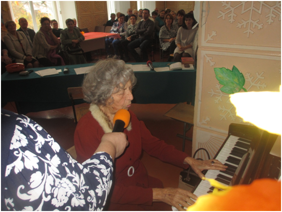 Разнообразные музыкальные номера были посвящены собравшимся в зале, но особый интерес вызвал романс в исполнении Петровой Нинель Филипповны, которая в прошлом году отметила свой 80 – летний юбилей, но всегда полна сил и энергии, является участником городского хора ветеранов.