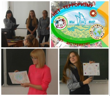 В течение октября 2016г. в Славгородском педагогическом колледже проводилась активная работа по профилактике экстремизма среди студентов нового набора. Учащиеся посетили психологические занятия «Толерантность – путь к здоровому обществу» и «Я не такой, как все и все мы - разные», проводимые психологом колледжа и сотрудником отдела психологической поддержки студенческого центра «Доверие» студенткой 4 курса Коваленко Яной. В ходе мероприятий студенты расширили круг своих знаний относительно содержания понятия «толерантность», её необходимости для развития полноценного общества и успешного осуществления профессиональной педагогической деятельности. Также первокурсники познакомились с понятием «интолерантность», основными формами её проявления, в том числе с экстремизмом – как опасном явлении, существующем в современном мире. Студенты принимали активное участие в обсуждении проблемы развития толерантности людей как способа борьбы с экстремизмом; анализировали свою индивидуальность, уровень собственной толерантности и способы её развития; выражали в творческой форме своё понимание проблемы, работая над созданием логотипа и слогана толерантности. Как отметили сами студенты, посещение данных мероприятий помогло им серьёзно задуматься над проблемой экстремизма и интолерантности в молодёжной среде, осознать необходимость воспитания в себе толерантной личности.