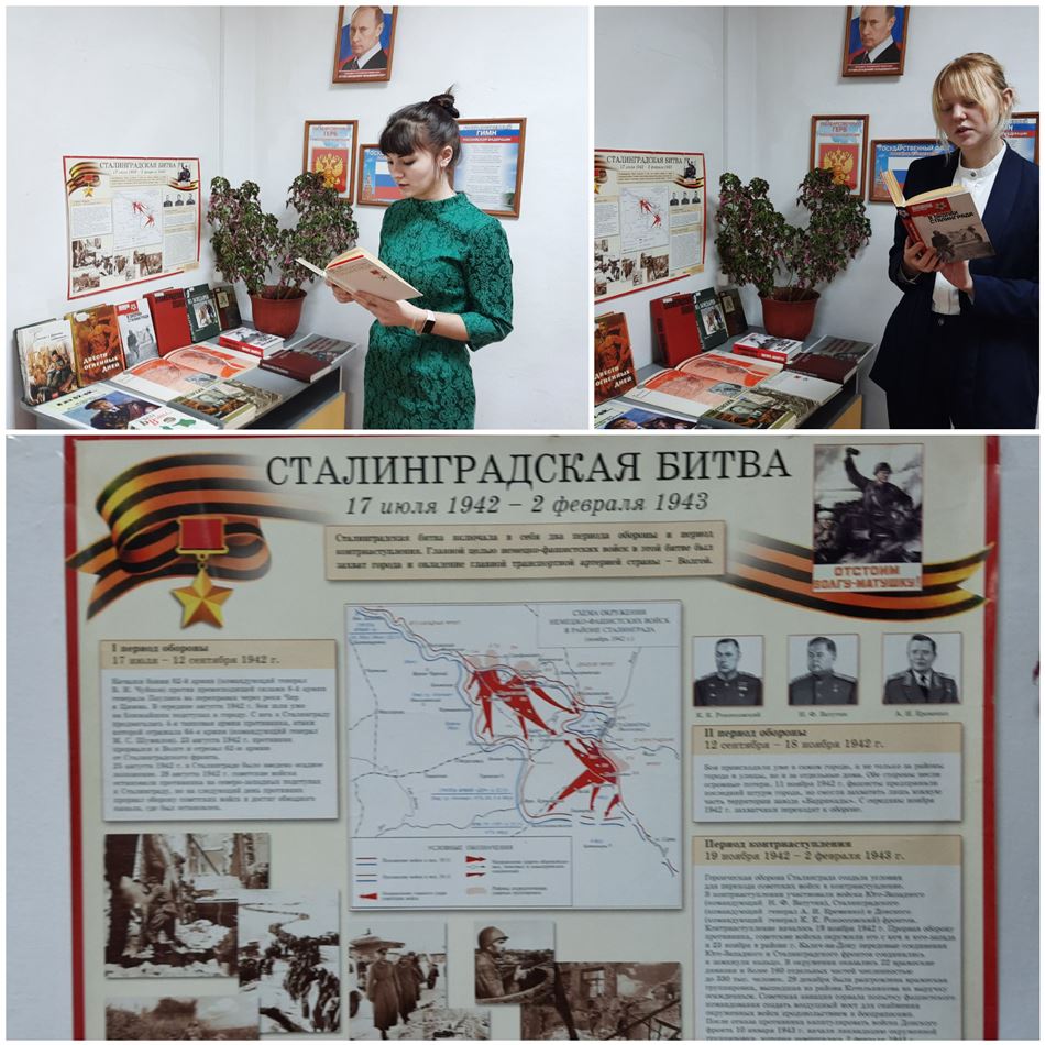 ![]() Победоносный Сталинград 2 февраля 1943 года, ровно 80 лет назад, завершилось одно из крупнейших сражений Великой Отечественной войны, вошедшее в историю как Сталинградская битва. Сталинградская битва – наиболее ожесточенная и кровопролитная в истории человечества Она длилась двести дней и ночей на берегах Волги и Дона, у стен Сталинграда, а потом и на его улицах. Сталинград – это слава нашего народа, наших солдат, город, в котором сломали хребет фашизму. Это город, с которого начались победы нашей Родины! Студенты общежития приняли участие в совместном мероприятии, прошедшем в военно – патриотическом клубе «Деснтник», «Здесь родиной каждому был Сталинград». В общежитии была организована книжно – иллюстративная выставка «Сталинград – история Победы», посвящённая 80 – летию разгрома советскими войсками немецко – фашистских войск в Сталинградской битве В экспозиции были представлены художественные произведения, карты, схемы, фотографии, галерея цитат и портретов. Желающие присоединились к акции «200 минут чтения: посвящается Сталинграду»… Хранить память об этом победоносном сражении, о той цене, которая была отдана за Великую Победу русским народом, важно для всех жителей нашей страны. Важно помнить самим, передавать молодёжи, насколько героически сражались наши солдаты, отстаивая независимость страны во время Великой Отечественной войны. Это пример для сегодняшнего поколения. Мы должны помнить подвиги героев, чтить их, передавать это уважение молодым ребятам, чтобы они готовы были в любой момент так же, как и их деды и прадеды, защитить нашу страну. Будем помнить – будем жить… Автор: Стрельникова О.А. Фото предоставлены автором