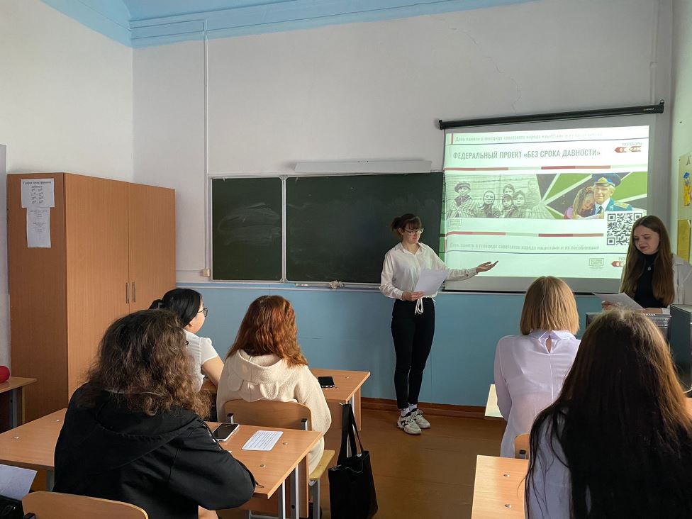![]() «Без срока давности» 17 - 19 апреля 2023 года для студентов Славгородского педагогического колледжа в рамках Всероссийского историко-просветительского проекта «Без срока давности» прошел День единых действий в память о геноциде советского народа нацистами и их пособниками в годы Великой Отечественной войны 1941 – 1945 гг. Кураторы групп провели для студентов классные часы «Ленинград – непокоренный город». Цель проекта - сохранение исторической правды о преступлениях нацистов и их пособников в отношении мирных советских граждан в годы Великой Отечественной войны на оккупированной территории. В этот день 19 апреля 1943 года был издан Указ Президиума Верховного Совета СССР № 39 «О мерах наказания для немецко-фашистских злодеев, виновных в убийствах и истязаниях советского гражданского населения и пленных красноармейцев, для шпионов, изменников родины из числа советских граждан и для их пособников». Появление этого документа было первым фактом признания целенаправленной и масштабной политики нацистов и их пособников по уничтожению мирного населения на оккупированной территории и наказуемости таких преступлений. Организатором Дня единых действий является АНО «Агентство социальных технологий и коммуникаций» совместно с ООД «Поисковое движение России» при поддержке Комиссии по делам молодежи, развитию добровольчества и патриотическому воспитанию Общественной палаты Российской Федерации, Министерства просвещения Российской Федерации, Министерства науки и высшего образования Российской Федерации. Автор: Агалакова В.В. Фото предоставлены автором