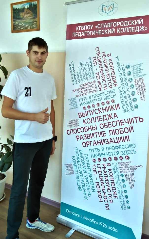 ![]() Участие в региональном этапе Всероссийского конкурса «Мастер года» Славгородский педагогический колледж принимает участие в региональном этапе конкурса мастеров производственного обучения «Мастер года - 2023» среди профессиональных организаций Алтайского края. Представлять колледж будет Мороз Евгений Вадимович, преподаватель специальных дисциплин по компетенции «Физическая культура, спорт и фитнес». Евгений Вадимович успешно прошел первый отборочный этап и уже допущен к следующему конкурсному этапу, который состоится с 15 по 19 мая. Ему нужно будет представить публичное монологическое выступление «Я – мастер» в формате видеозаписи и «Мастер – класс» - это занятие с группой обучающихся, подобранных организаторами регионального этапа конкурса. Евгений Вадимович до срочной службы в рядах Вооруженных сил Российской Федерации закончил с отличием Славгородский педагогический колледж и с 2019 года начал здесь свою профессиональную деятельность в качестве преподавателя физической культуры. У преподавателя первая квалификационная категория и он получает высшее образование в АГГПУ им. В.М. Шукшина по специальности «Учитель физической культуры и ОБЖ». Евгений Вадимович - педагог, владеющий методикой преподавания и анализа учебно-методической работы по физкультуре. В своей работе преподаватель стремится к постоянному совершенствованию педагогического мастерства посредством изучения опыта коллег и постоянным посещением очных и дистанционных обучающих мероприятий – семинаров, конференций и вебинаров.