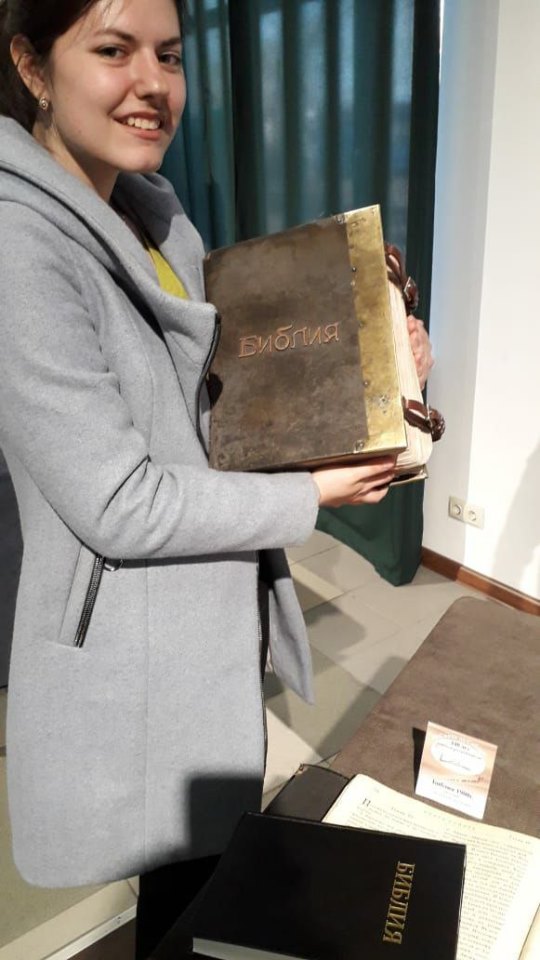 ![]() Уникальное путешествие в историю Студенты Славгородского педагогического колледжа посетили уникальную выставку Библии. В Славгороде она проходила впервые. На пяти экспозициях выставки были экскурсоводы, которые доступно рассказывали о представленных экспонатах – более 200.Мы узнали о необыкновенной истории создания Книги, как писалась, распространялась и переводилась; увидели раритетные экспонаты, которым 100 – 200 лет, рукописные фрагменты частей Библии, современные копии Библии и в необычном формате: не мокнущая в воде Библия, микро – Библия, которую можно прочесть только через микроскоп, настоящий папирус и пергамент, глиняную табличку, копию первого печатного станка Гутенберга 1445г. в действии – экскурсовод на печатный трафарет нанес типографическую краску и предложил нам выполнить оттиск страницы. Начало печати Библии – 1450г., первая печаталась пять лет. Напечатано 180 Библий: 30 – на пергаменте, 150 – на итальянской бумаге с водяными знаками, 47 из них сохранилось до наших дней. Библия – самая издаваемая книга в мире. Ежедневный тираж – 32876 шт. Самая большая – 110*250*86 см, 492,5 кг и 8048 страниц. Самая маленькая – 0,5 мм2. Эта экскурсия - уникальное путешествие в историю самой удивительной Книги на земле – Библии. Желающие получили Библию в подарок. Автор: Гайдамакина Т.В. Фото предоставлены автором