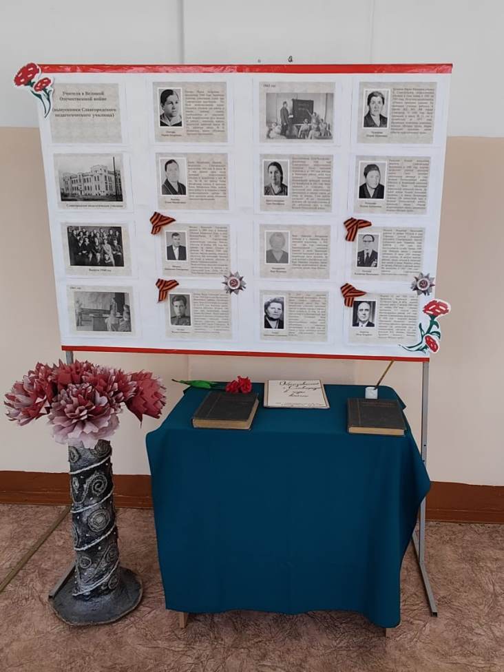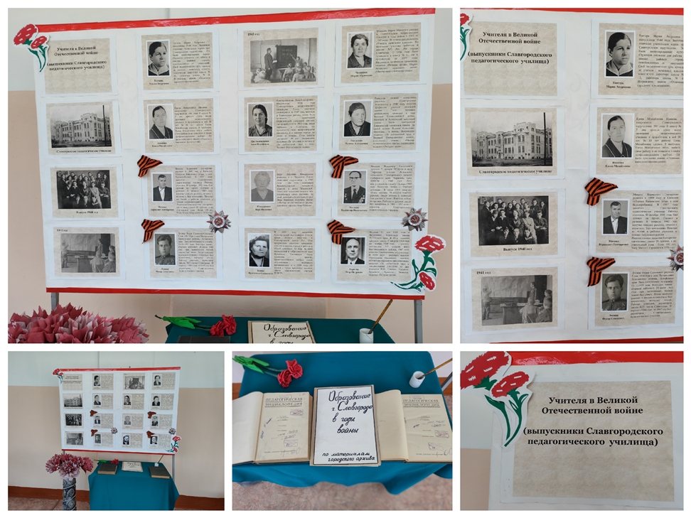 ![]() Музейная экспозиция Годы войны принесли педучилищу тяжёлые испытания. На фронт были мобилизованы почти все преподаватели мужчины. Занятия проходили в три смены. О войне напоминали госпитали, под которые были заняты учебные здания. Учащиеся педучилища осуществляли постоянное шефство над госпиталями. Война наложила отпечаток на все стороны жизни училища. Учащимся приходилось выполнять все хозяйственные работы. Все эти тяготы жизни мужественно переносили и преподаватели. Они всегда и везде находились с учащимися, участвовали во всех студенческих мероприятиях, вместе веселились и грустили. В классах было не только тесно, но холодно и темно. Освещение давали керосиновые лампы – «коптилки», которые часто гасли из-за нехватки кислорода в классах. Бумага для письма вообще отсутствовала, тетради делали из газет или писали между книжными строчками карандашами, так как от ручек отказались в связи с тем, что зимой чернила не выдерживали низкой температуры и застывали. Учебники отсутствовали, записывали объяснения учителя, потом отвечали по конспектам. Но, несмотря на все трудности, которые приходилось преодолевать в годы войны, свою главную задачу - задачу подготовки учителей, училище решало успешно! Из стен училища ежегодно выпускались учителя. Все верили: будет победа, будет жизнь, будут дети, и будет, кому их воспитывать и учить! Труд педагогов в военное время – это особая страница в истории нашего образования. Сотни тысяч учителей выполняли свою благородную миссию в тылу врага, обучая детей. Сегодня мы отдаем дань памяти людям, которые, не жалея сил, продолжали обучать школьников и студентов в годы войны. Именно о таких учителях наша музейная экспозиция «Учителя в Великой Отечественной войне (выпускники Славгородского педагогического училища)». Музейную экспозицию подготовили студенты 25 группы Мельник Валентина и Колосова Анжелика. Автор: Булгакова Н.А. Фото предоставлены автором