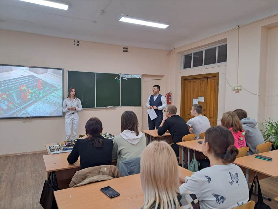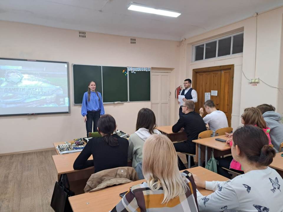 ![]() Международный день памяти жертв фашизма В сентябре народы, в истории которых черной чертой прошла Вторая мировая война, вспоминают жертв фашизма. Это день памяти десятков миллионов людей, погибших в результате гигантского, нечеловеческого эксперимента. В 1962 году было принято решение считать каждое второе воскресенье сентября Международным днем памяти жертв фашизма, основной целью которого является борьба с идеологией возрождения фашизма. В рамках памятной даты 11 сентября советником директора по воспитанию А.С. Кеном был проведен классный час на тему «Сила слова». Студенты 23 группы рассказывали о своих родственниках – о тех, кто сражался на фронте, о трудностях, с которыми они сталкивались и о их вкладах в победу. Мероприятие «Сила слова» стало мостом между поколениями, которое позволило студентам лично прочувствовать историческое наследие своих семей и страны. #навигаторыдетства #Росдетцентр #вдохновленныемужеством #навигаторыдетства22 #НавигаторыСПО22 Автор: А.С. Кен, советник директора по воспитанию и взаимодействию Фото предоставлены автором