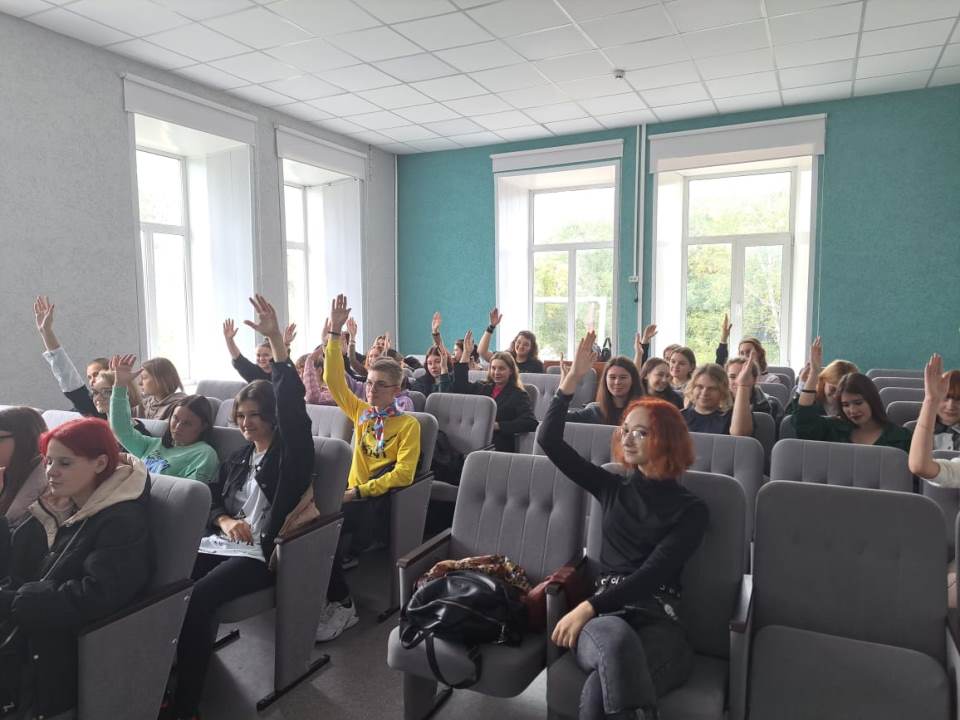 ![]() Выборы в Совет Первых 13 сентября в Славгородском педагогическом колледже состоялось заседание Первичного отделения РДДМ "Движение Первых". Мероприятие посетили 44 студента 1-3 курсов. В рамках заседания с ребятами провели беседу сопредседатель-наставник первичного отделения Андрей Сергеевич Кен и председатель первичного отделения Зейналова Карина. Было отмечено, что участие в Движении - это уникальная возможность найти себя, свое место в жизни и обществе, дело по душе; определить тот род деятельности, в котором хотелось бы развиваться. Все участники были более подробно ознакомлены с миссиями, ценностями и направлениями Движения, структурой его работы и работы отделений в учебных заведениях. Студенты получили ответы на возникшие вопросы и воспользовались возможностью выбрать интересующие их направления. Так, посредством открытого голосования, на заседании были проведены выборы Лидеров Направлений (тех ребят, которые возглавят все двенадцать комиссий по направлениям) и сформированы отряды. Благодаря богатому выбору векторов работы все студенты, находившиеся на заседании, смогли выбрать свой отряд по душе и начать реализовываться в нем. Быть в Движении - это значит быть патриотом, любить природу и бережно к ней относиться, уважать старших и не обижать младших, заниматься спортом и вести здоровый образ жизни, не бояться заявить о себе и устремиться навстречу новым знаниям и драгоценному опыту. Именно поэтому Первичное отделение Славгородского педагогического колледжа ведёт активную работу по привлечению студентов в Российское Движение Детей и Молодёжи. Автор: Зейналова Карина, студентка 31 группы Под редакцией А.С. Кена Фото предоставлены автором