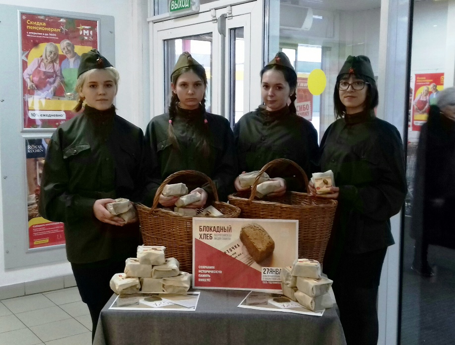 Всероссийская акция «Блокадный хлеб» началась 18 января (день прорыва Ленинградской блокады) и завершилась 27 января (день полного снятия блокады). Главная цель акции памяти – напоминание о событиях того времени, о мужестве мирного населения блокадного Ленинграда. Ключевым символом всероссийской акции памяти «Блокадный хлеб» является кусочек хлеба весом в 125 граммов – именно такая минимальная норма выдачи хлеба была установлена во время блокады Ленинграда. Студенты СПК приняли участие в масштабной всероссийской акции «Блокадный хлеб», посвящённой сохранению исторической памяти о подвиге ленинградцев в годы Великой Отечественной войны 1941-1945 гг. На мероприятии волонтёры раздавали памятки и листовки о блокаде Ленинграда и подвиге его жителей, каждый желающий участник получил символический кусочек «блокадного хлеба».